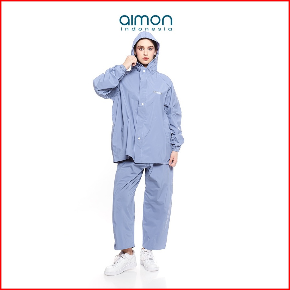 Jas Hujan Pria Wanita Setelan Jaket Celana Dewasa Pvc 0.25 Tebal Elastis Anti Air Aimon