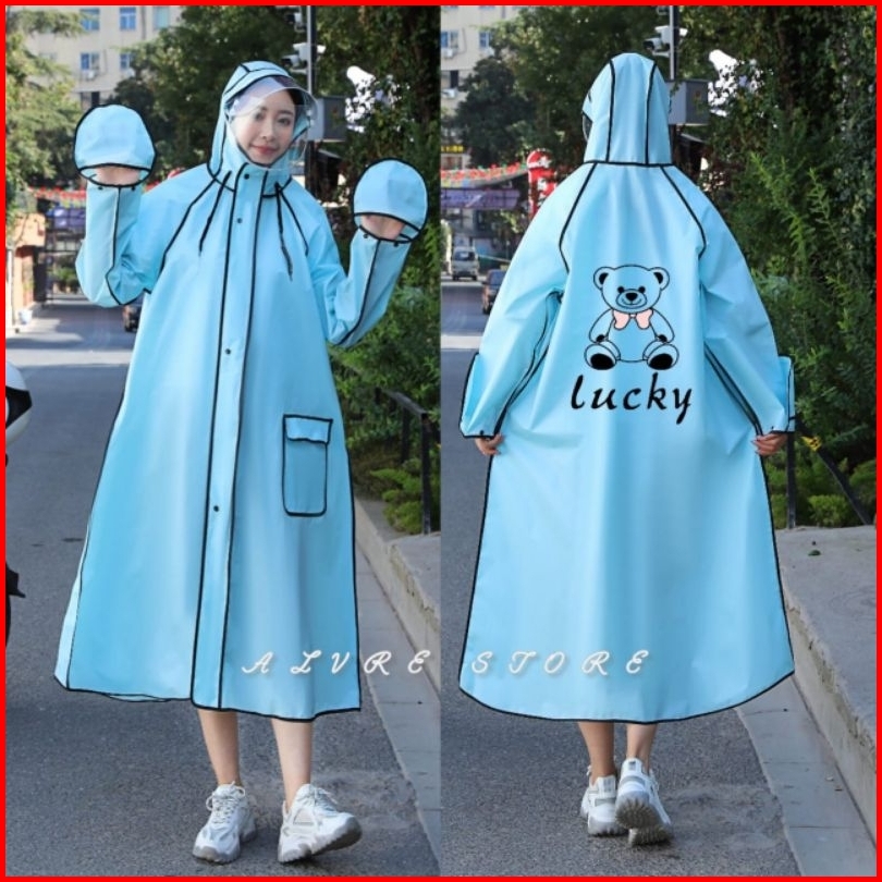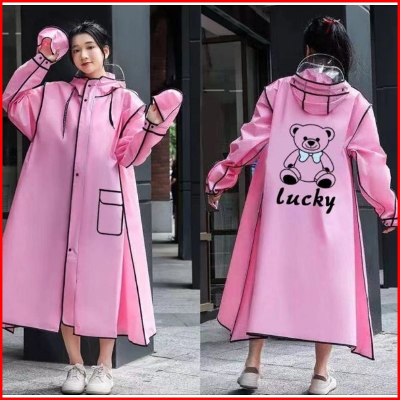 Jas Hujan Terusan Dewasa Zipper Korea Style Raincoat Mantel Hujan Zipper Faceshield Pria Wanita Cakep