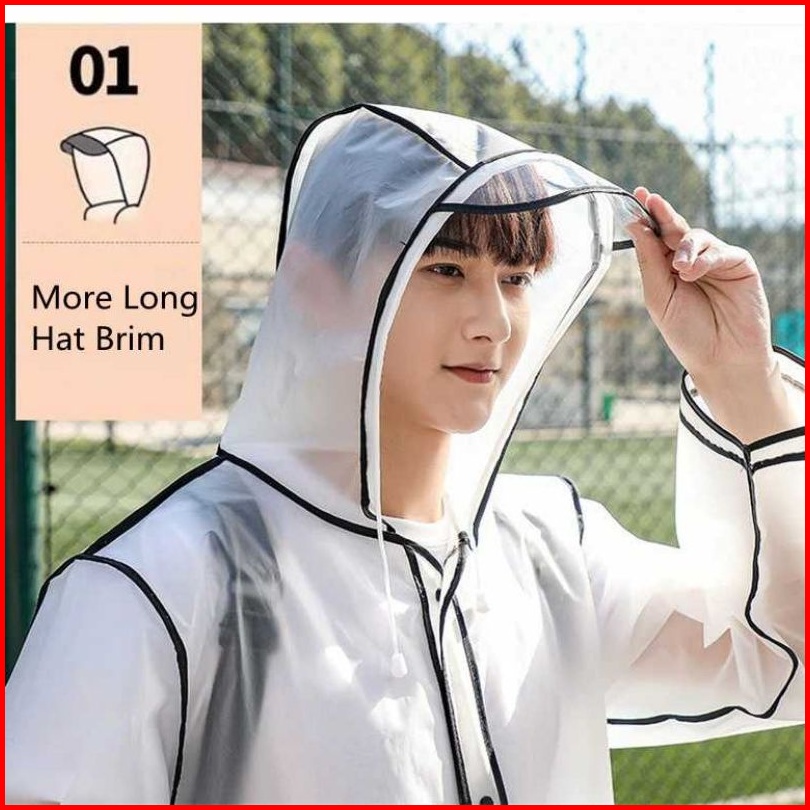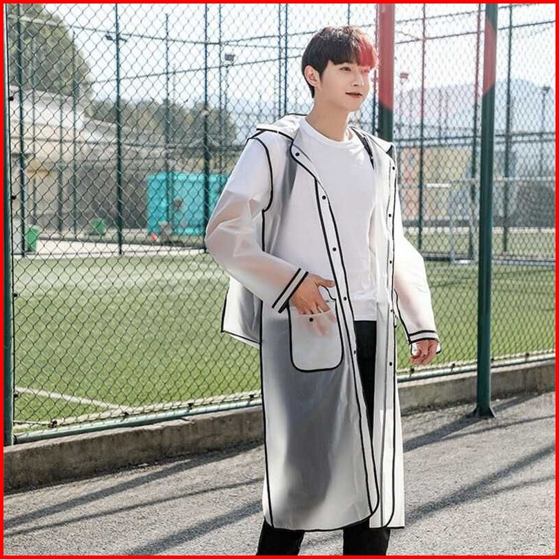 Jas Hujan Pria Wanita Portable Raincoat Transparent Poncho Ponco With Hood Dengan Tempat Tas