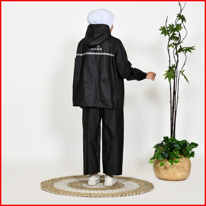 Jas Hujan Setelan Dewasa Pria Wanita Bahan Pvc Karet Lentur Kuat Waterproof By Piton