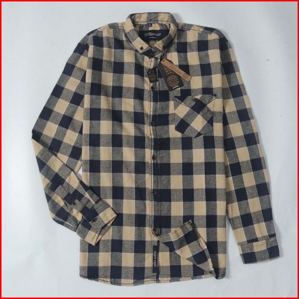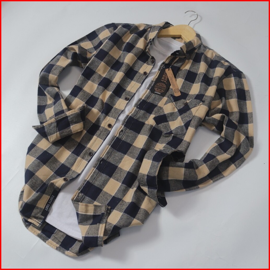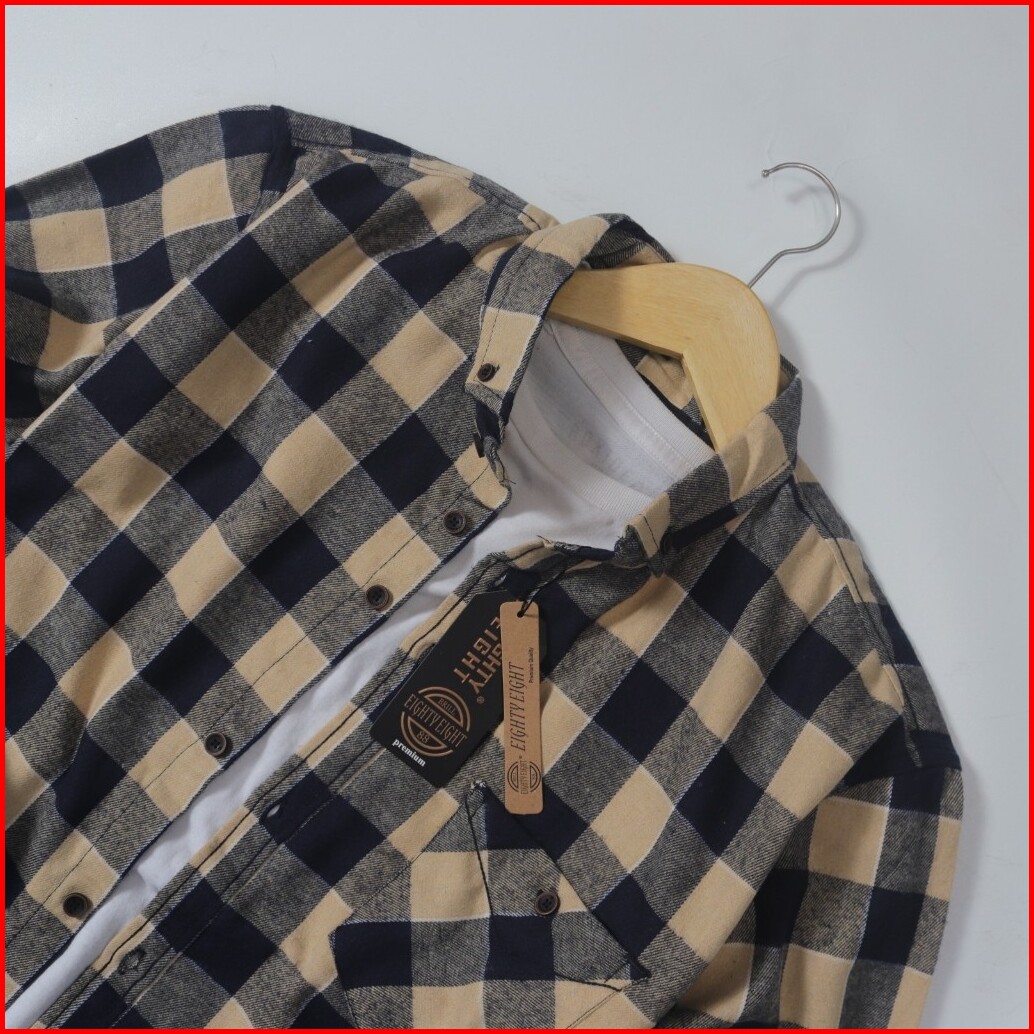 Brill Eighty Eight - Kemeja Flanel Panjang Premium Navy Beige Soft Yellow 88 L3365