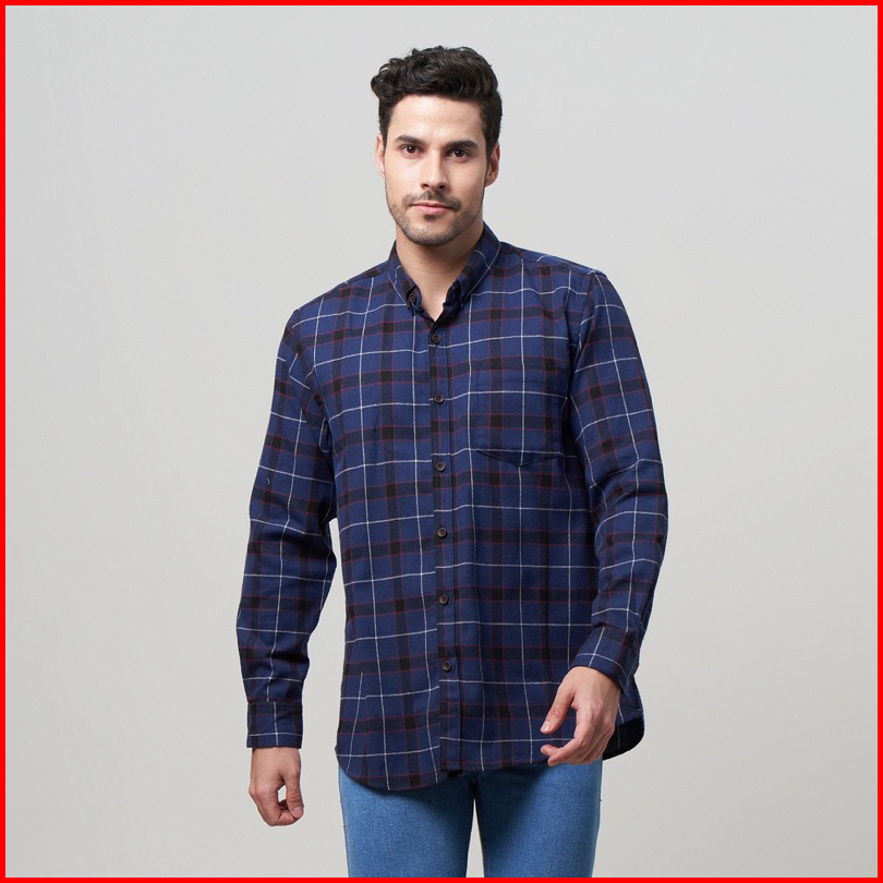 Peternation Kemeja Flanel Pria Wool Basic Panjang Regular Fit F1059