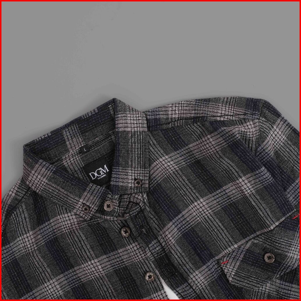 Dgm Kemeja Pria Lengan Panjang Flanel Double Pocket Casual Flanel Kantong Dua 2077