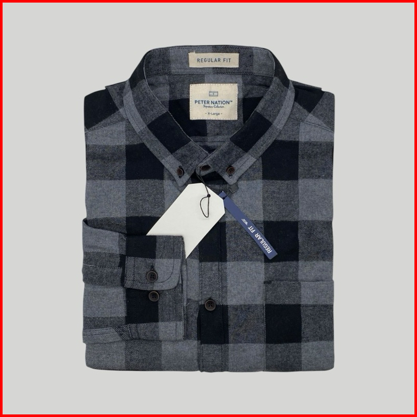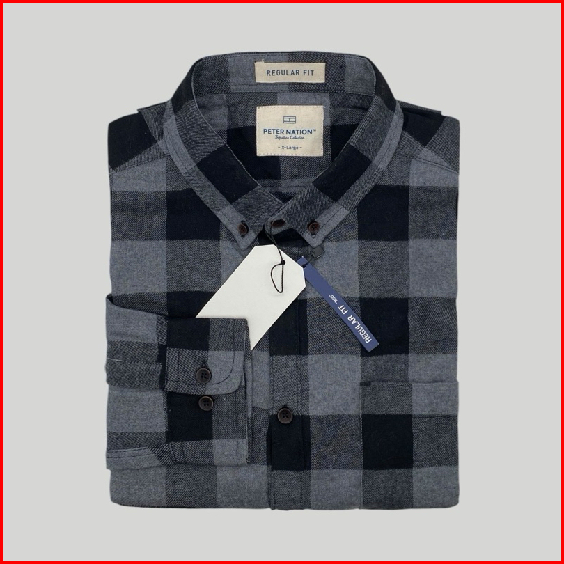 Peternation Kemeja Flanel Pria Wool Basic Panjang Regular Fit