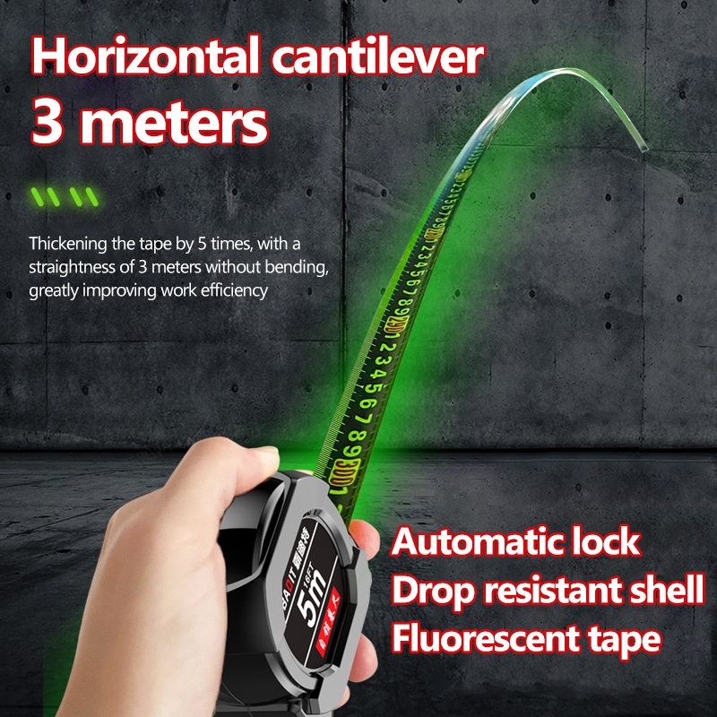 Meteran Tukang Measuring Tape Pita Neon Tebal dan Pita Tahan Aus Tongkat Pengukur Kelas Industri Presisi Tinggi Baja