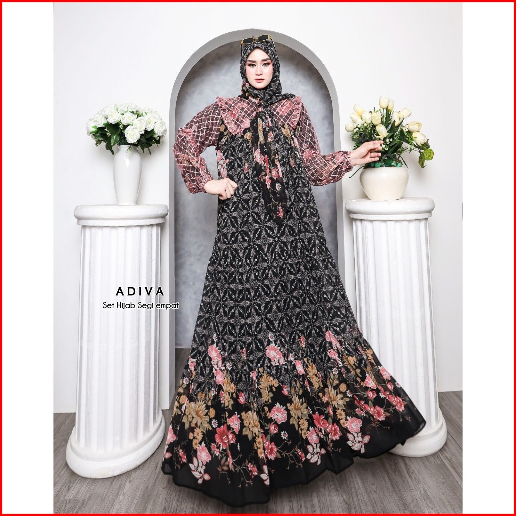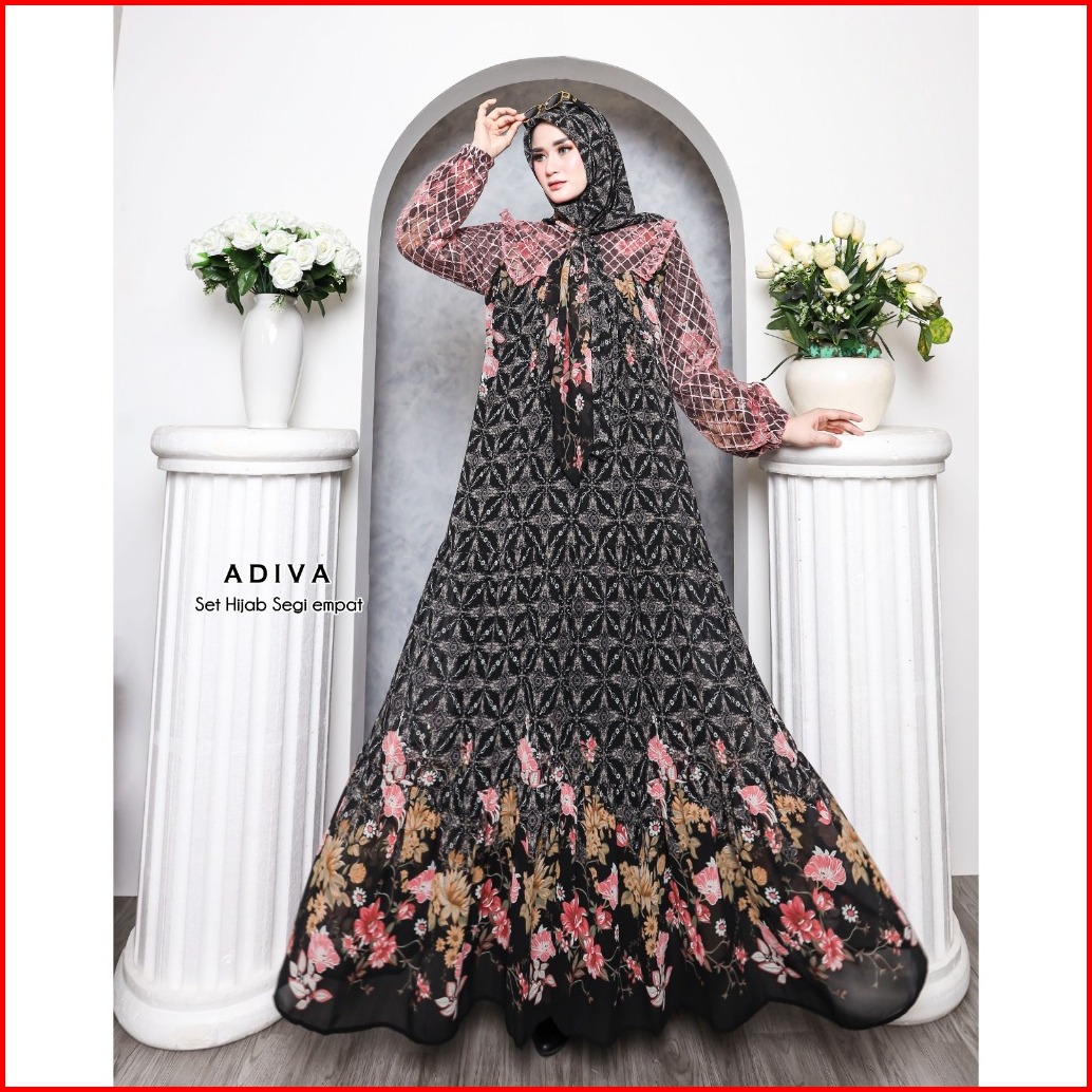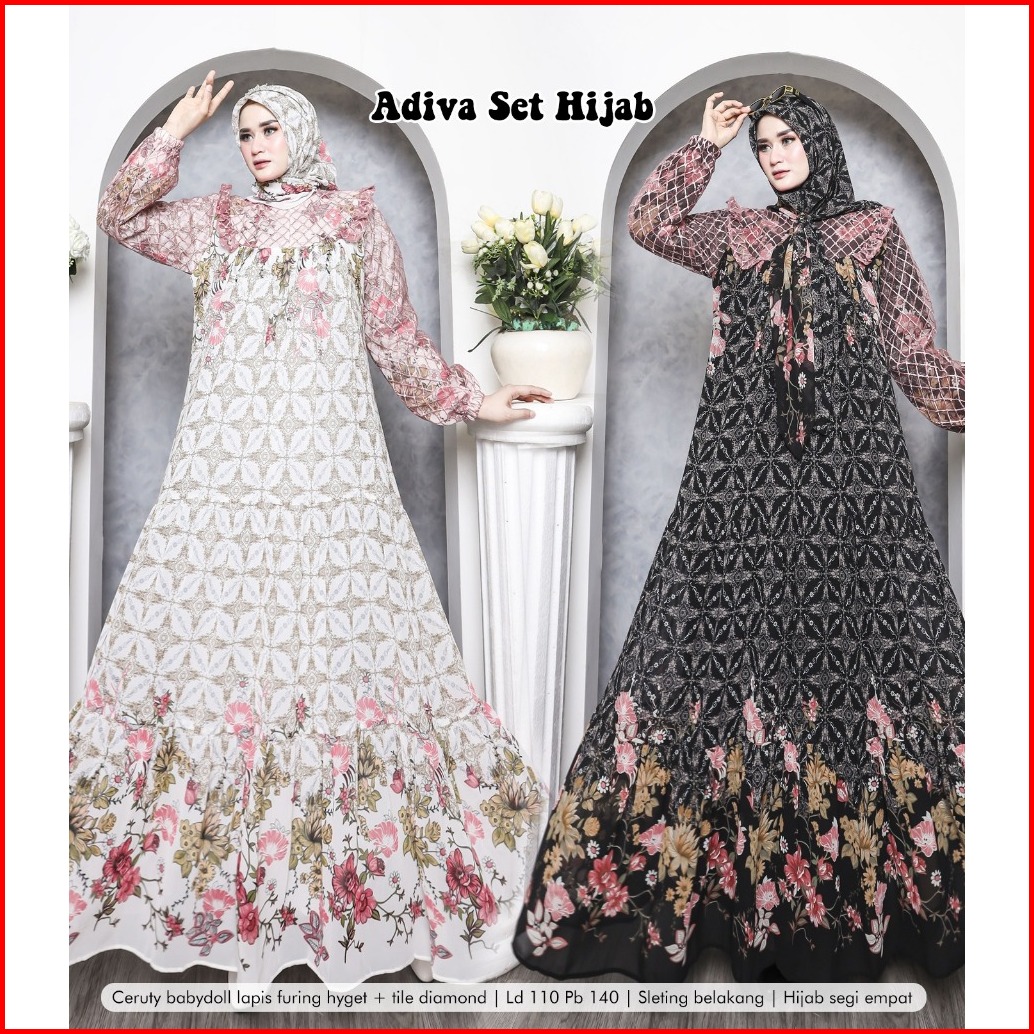 Ilya Fs - Adiva Gamis Set Hijab Gamis Ceruty Gamis Terbaru Gamis Lebaran Gamis Mewah Pesta
