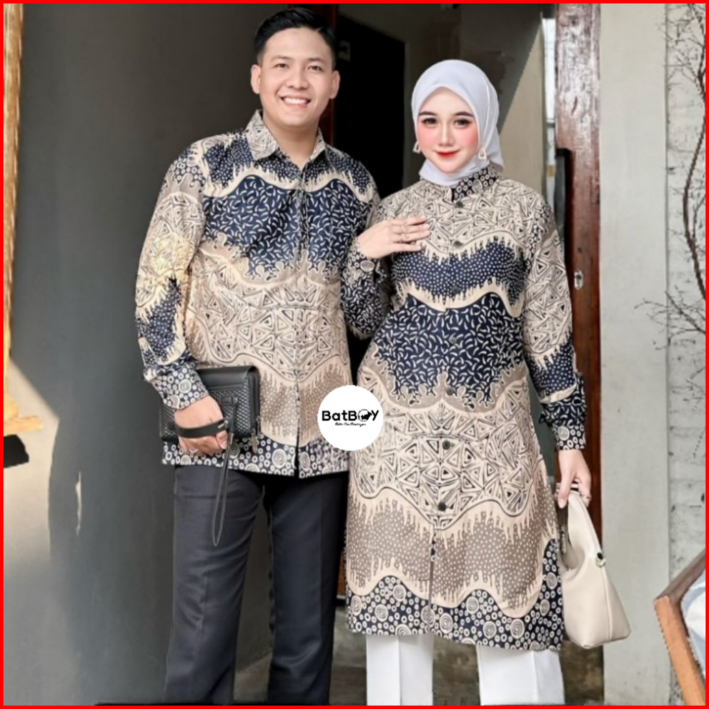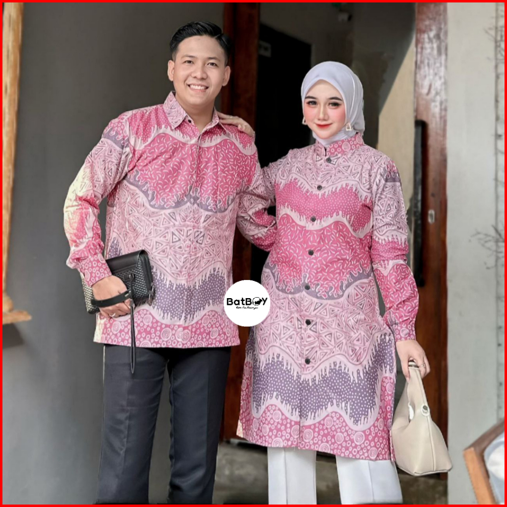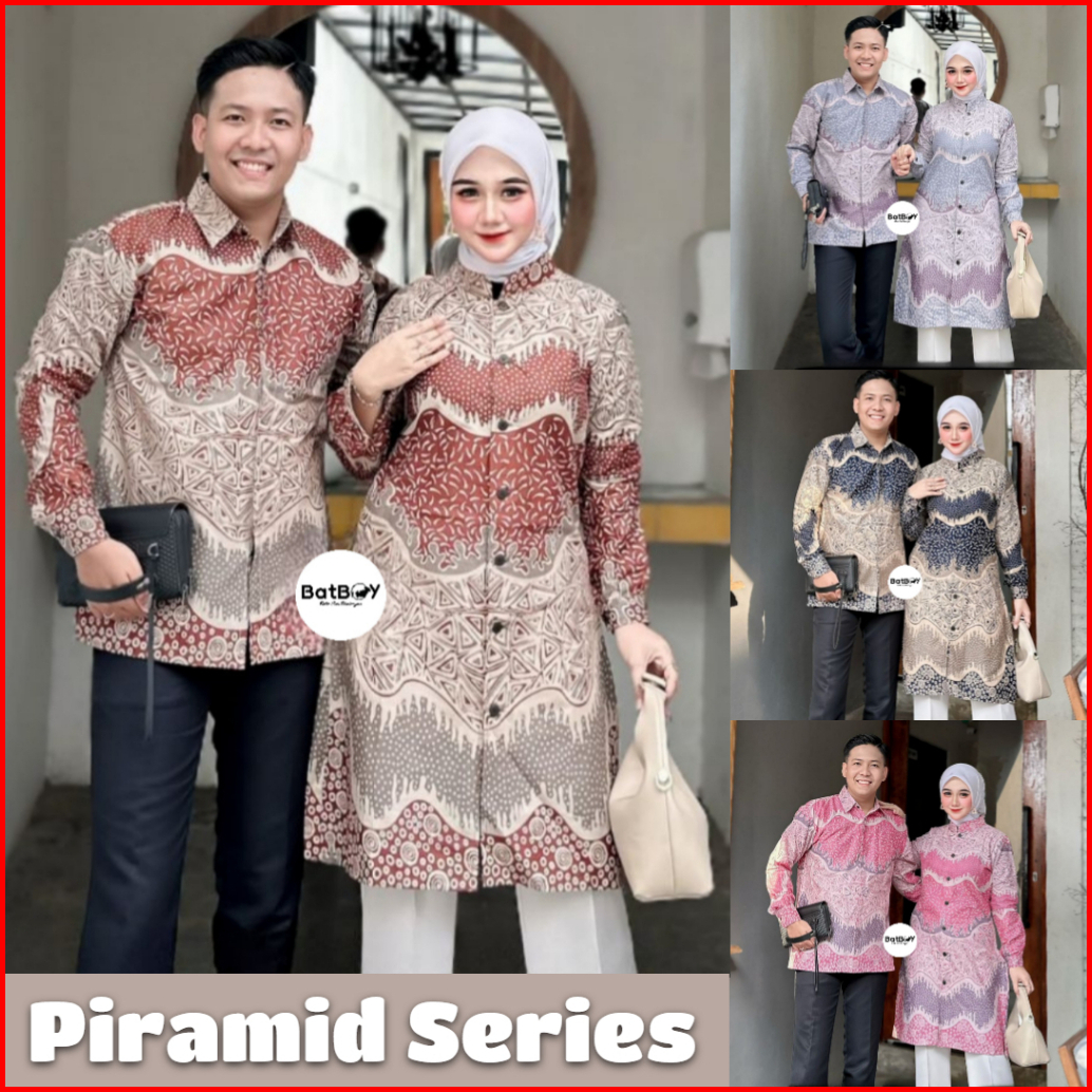 Piramid Series Tunik Kemeja Lengan Panjang Batik Couple Seragam Modern Atasan Baju Kerja Wanita