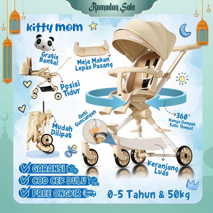 Kitty Mom - Stroller Bayi Balita Travelling 2 Arah Newborn - Dilipat dan Berbaring Cabin