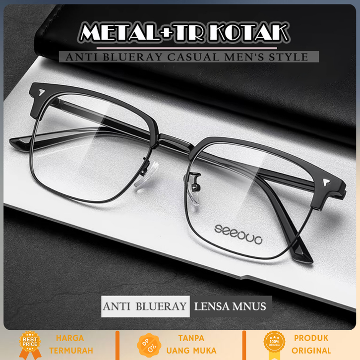 [Star]Kacamata Photocromic Pria 8956 8951 Antiradiasi Bluecromic Blueray Minus Baca Hitam Keren Terkini Original