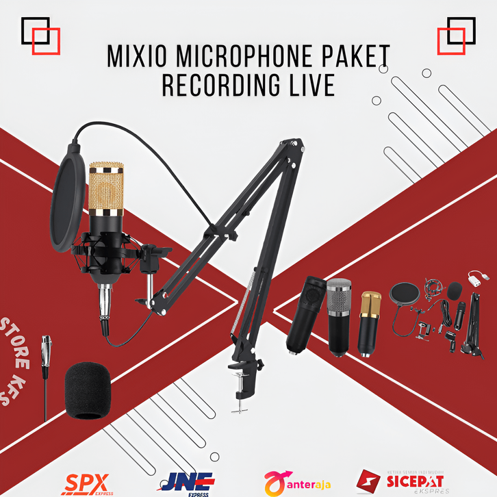 MIXIO BM800 ORIGINAL FULL PAKET RECORDING MICROPHONE CONDNSER LIVE TERLARIS FREE ONGKIR