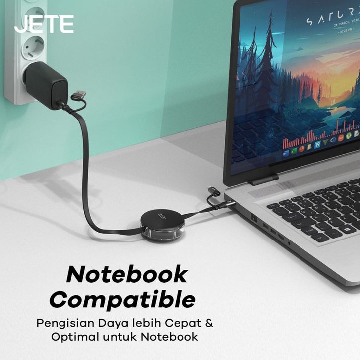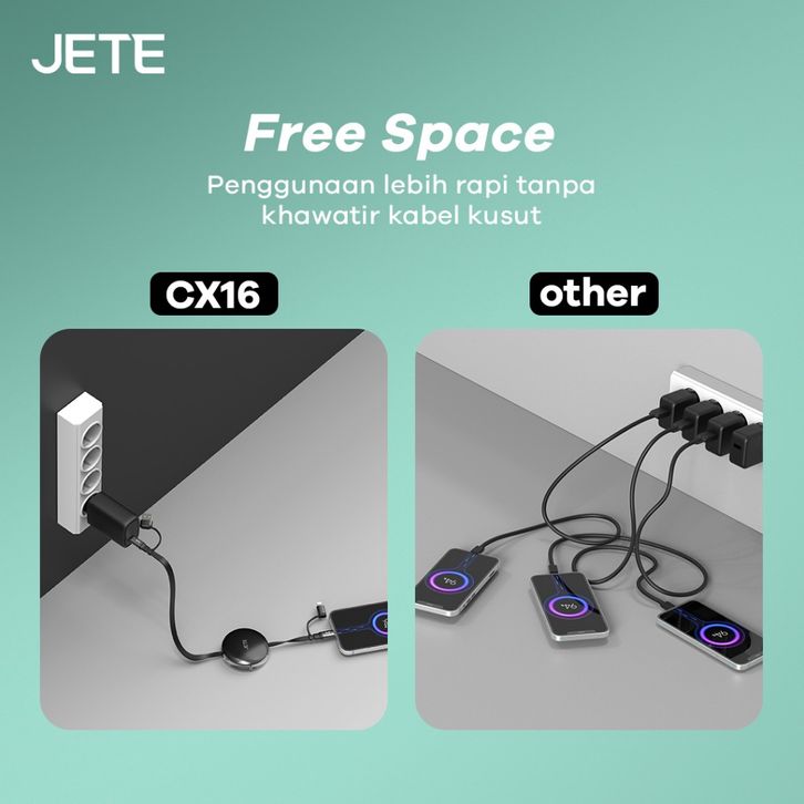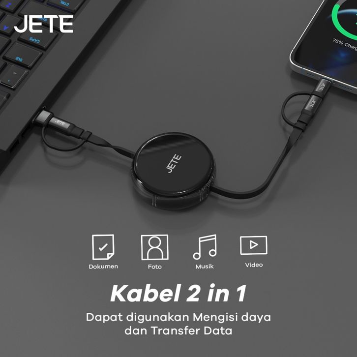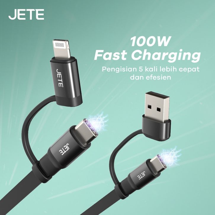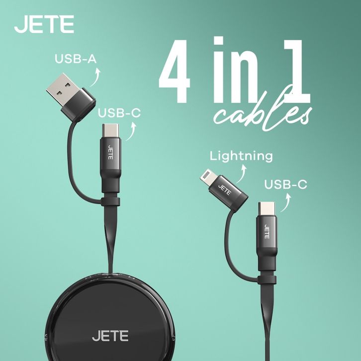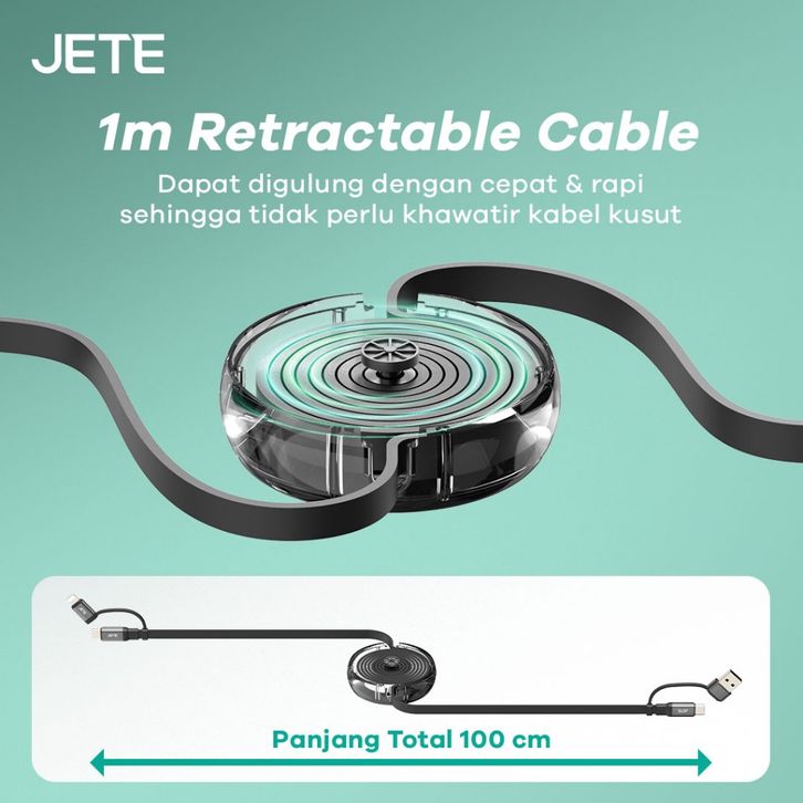 KABEL DATA 100W FAST CHARGING JETE CX16 4IN1 ROLL RETRACTABLE FOR IOS ANDROID NOTEBOOK GARANSI 2TH