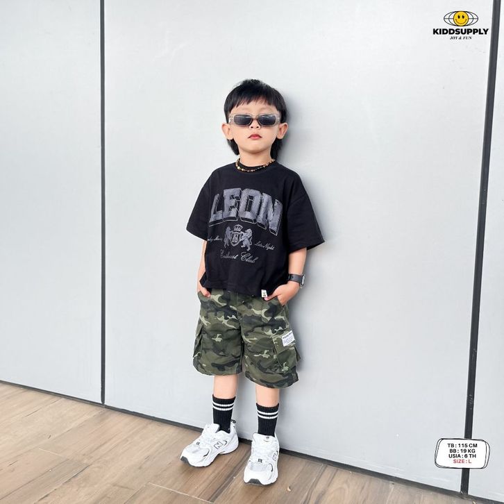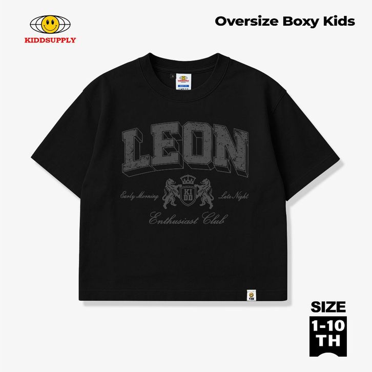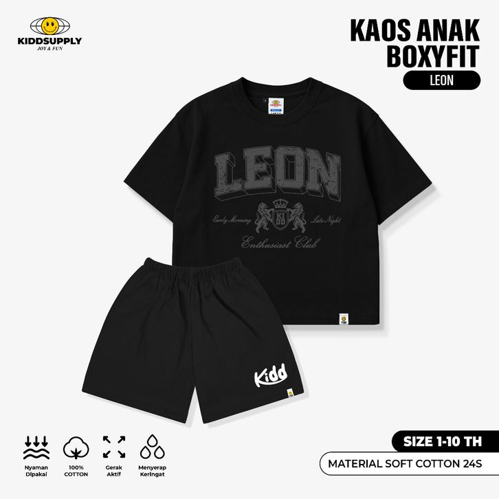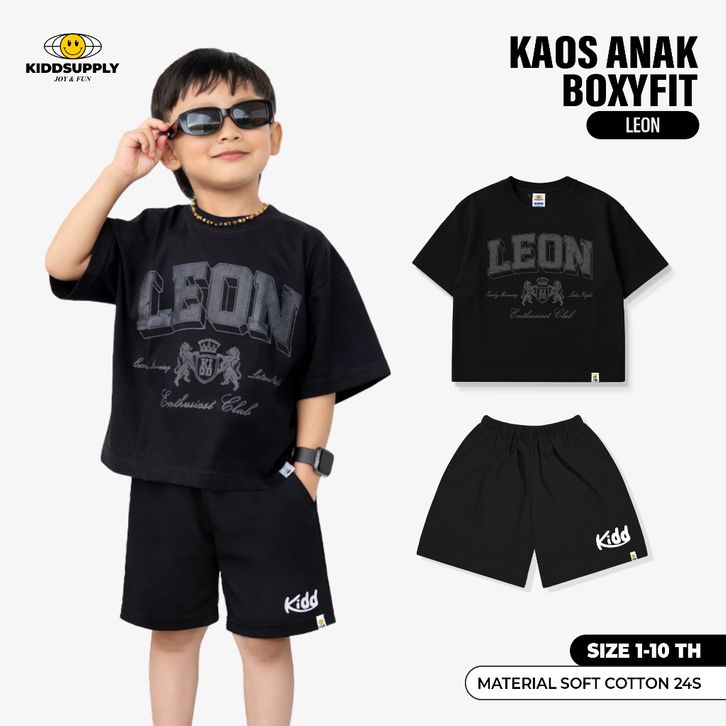 Tshirt & Oneset BoxyFit Leon Black| Tshirt Boxyfit Kids | Kaos Boxy Anak | KD-OS-BX018