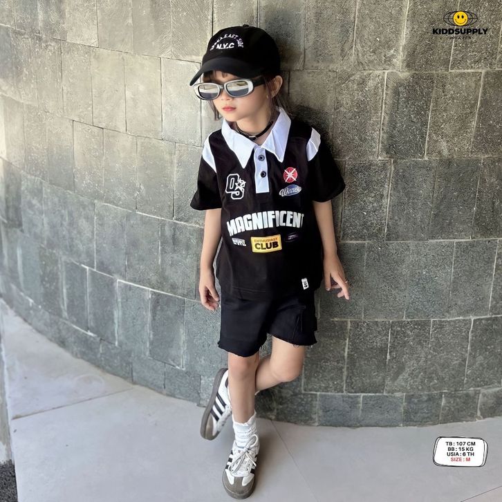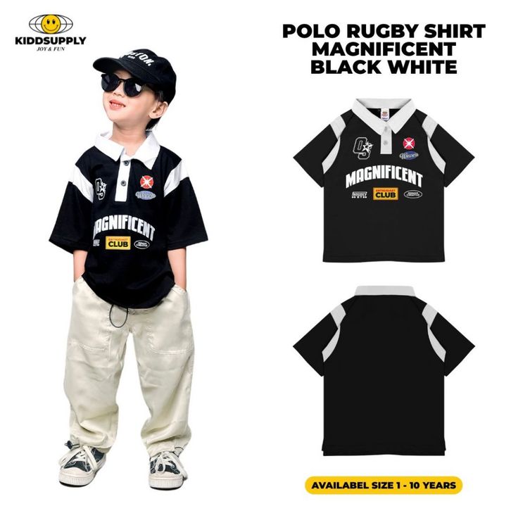 Kaos Anak Laki - Laki | Polo Rugby Shirt Magnificent Black White Polo Kids