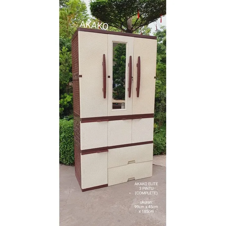 Lemari Pakaian Baju Plastik LP3P JUMBO BESAR Akako ELITE 3 PINTU MURAH LACI GANTUNG KACA CERMIN