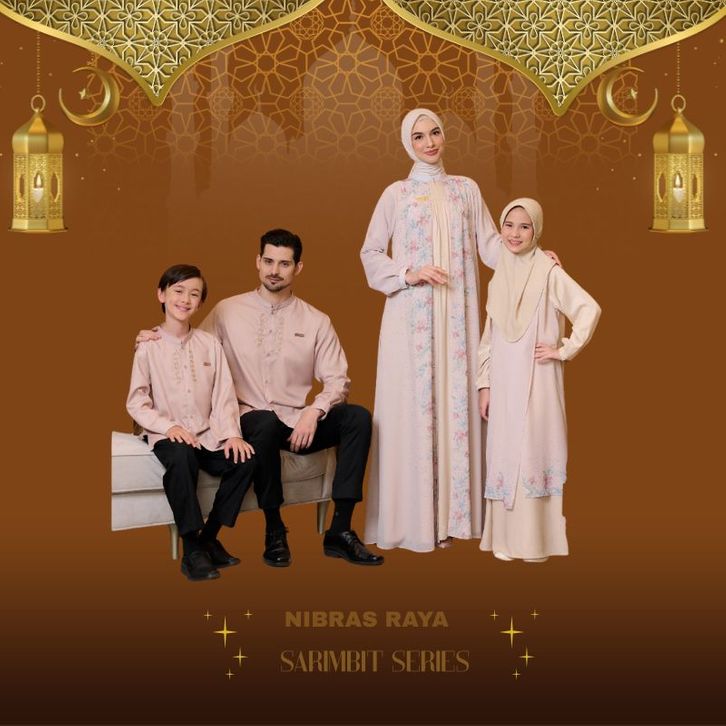 BAJU COUPLE KELUARGA MUSLIM COUPLE KELUARGA MUSLIM LEBARAN 2026 TERBARU NIBRAS RAYYA UMBRA CREAM BEIGE