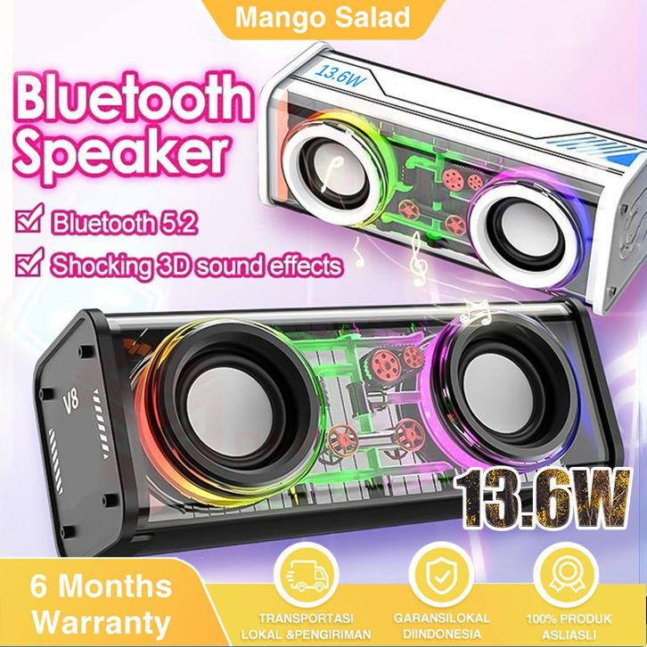 GRATIS ONGKIR✔️TANPA DP✔️V8 DUAL-HORN TRANSPARENT MECH SPEAKER BLUETOOTH SOUNDBAR RGB LED LIGHT 360° STEREO SURROUND WIR