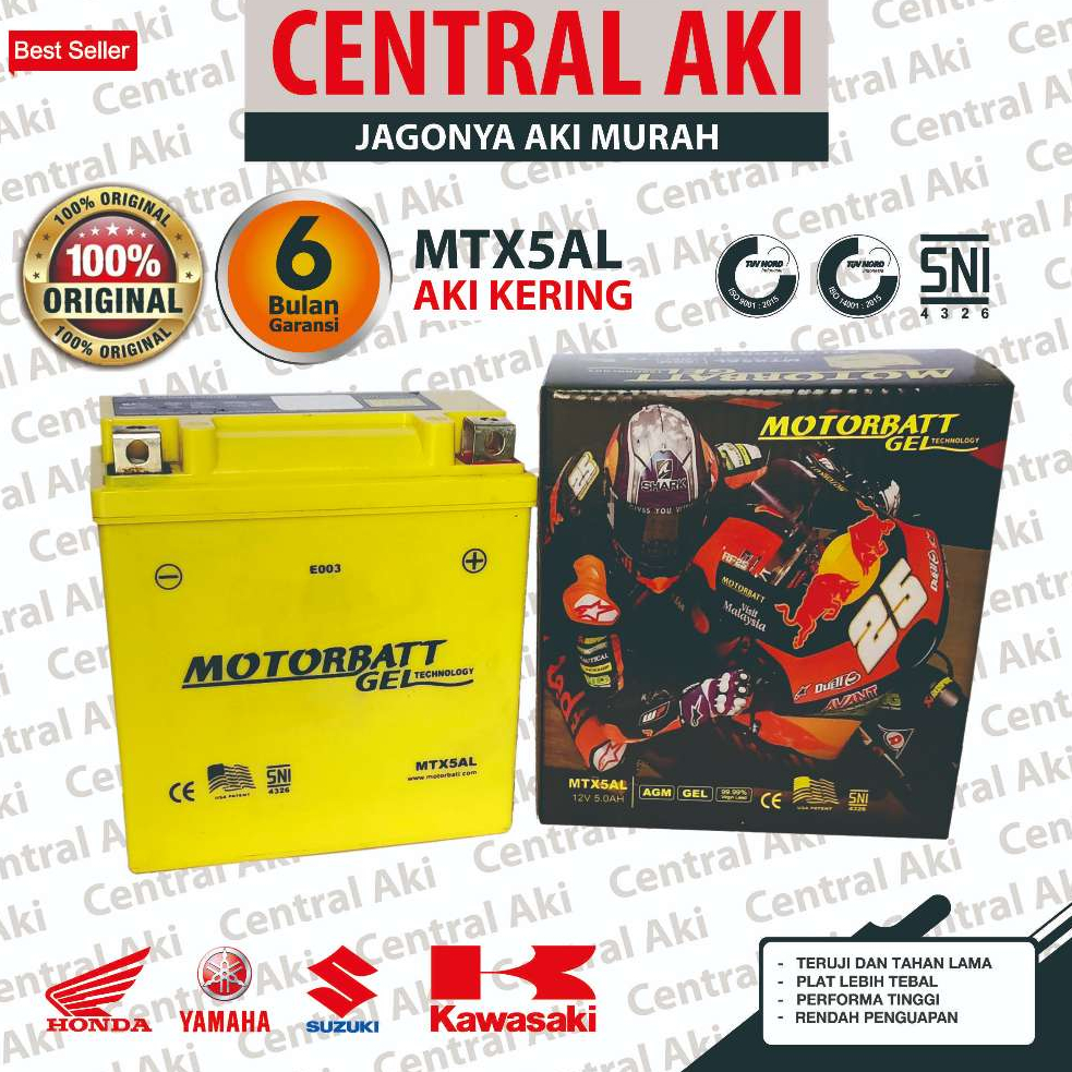 GERATIS ONGKIR MOTORBATT MTX5AL Aki Kering Gel Motor Astrea Grand Supra Fit Jupiter Z Lama Smash Mio Sporty Mio Smile Sh