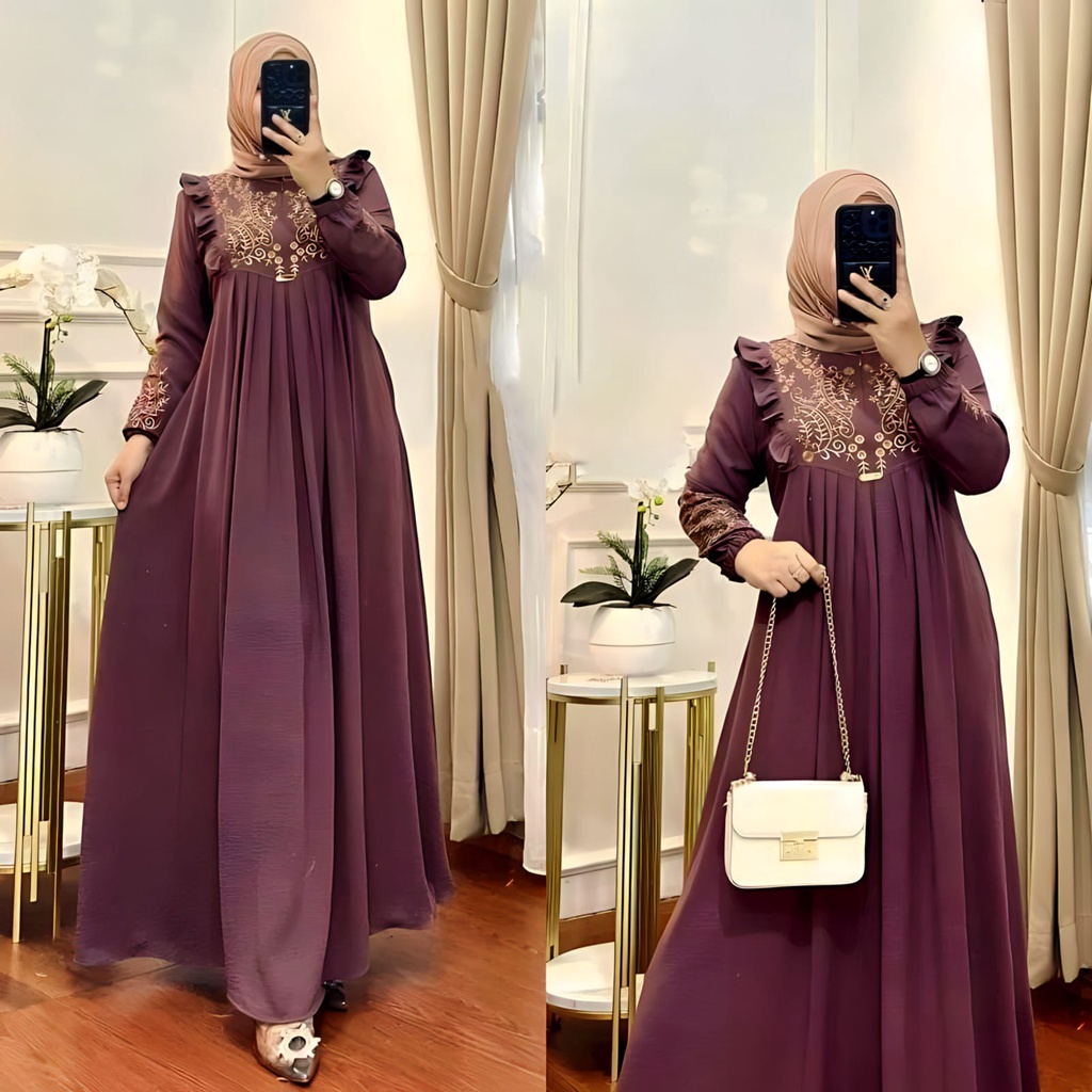 (Gratis Ongkir) Lunara Dress Gamis Muslim Wanita Matt Cringkle Apk Bordir l Dress Kondangan Modern Kekinian OOTD Casual