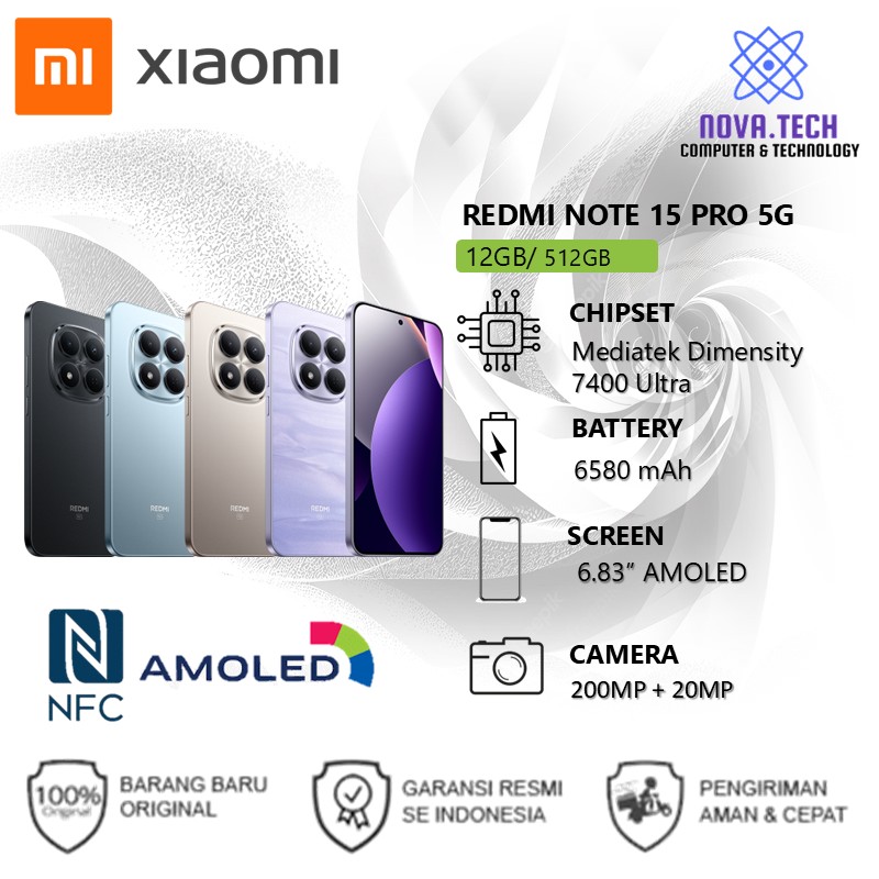 Xiaomi Redmi Note 15 Pro 5G | [8GB 256GB] [12GB/ 512GB] | Camera 200MP | Layar Amoled | NFC Segel Box Resmi