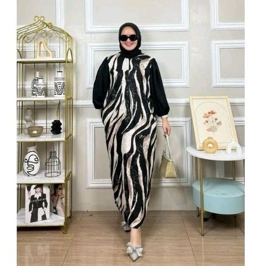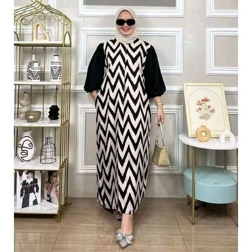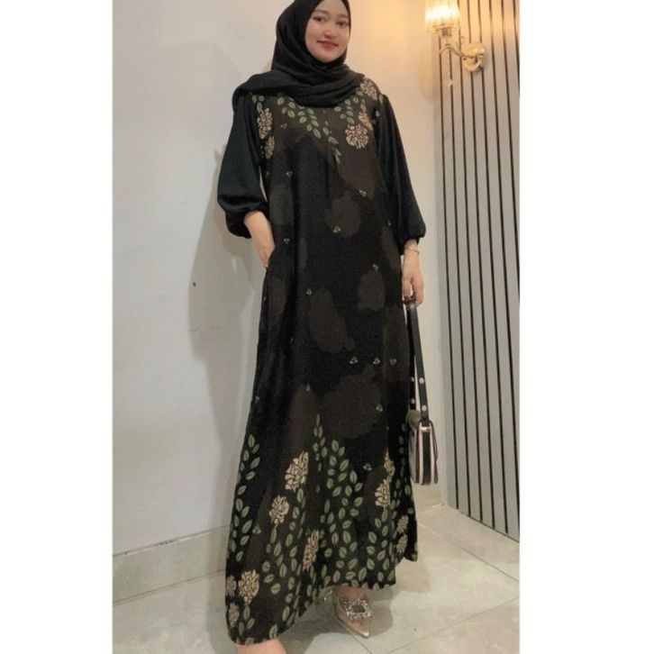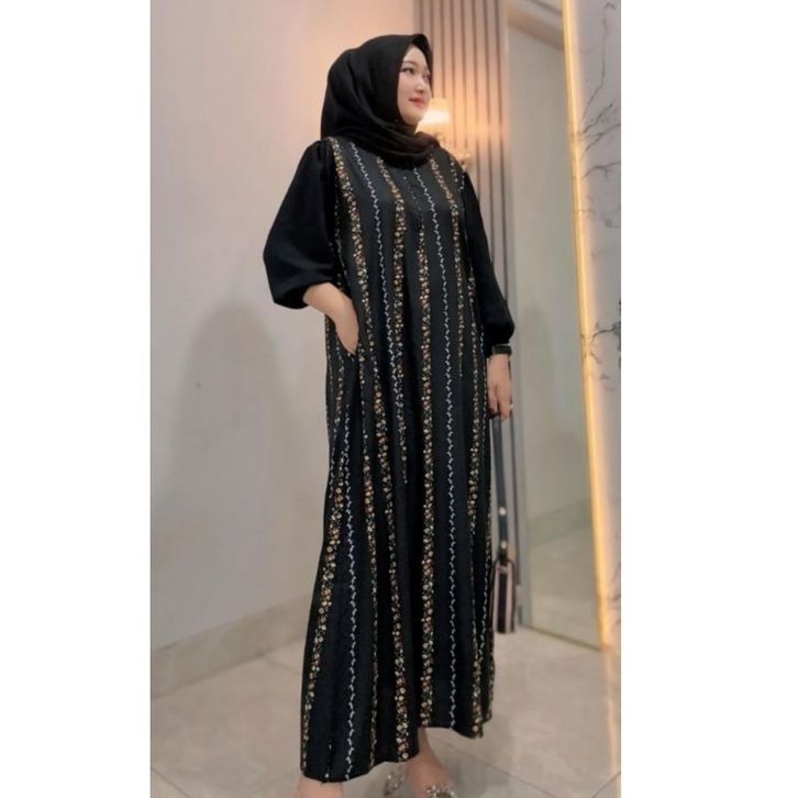 Dress Gamis Stylish Bahan Rayon Berkualitas Premium Adem Dan Tidak Kusut Kombinasi Motif Cringkel Airflow Stylish