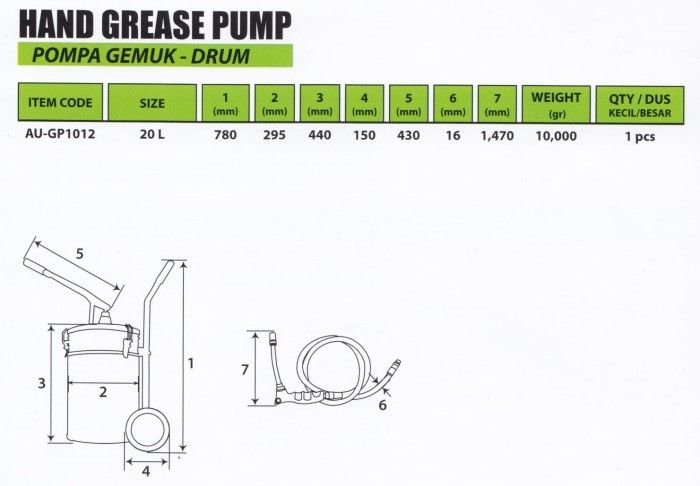 POMPA GEMUK DRUM 20L TEKIRO / HAND GREASE PUMP