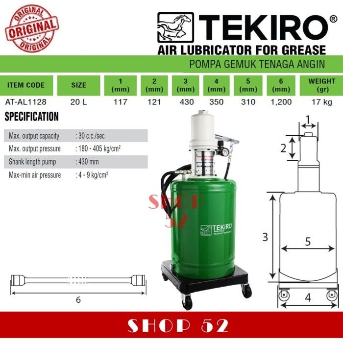 TEKIRO Pompa Gemuk Tekanan Angin Air Lubricator For Grease Drum 20 Ltr