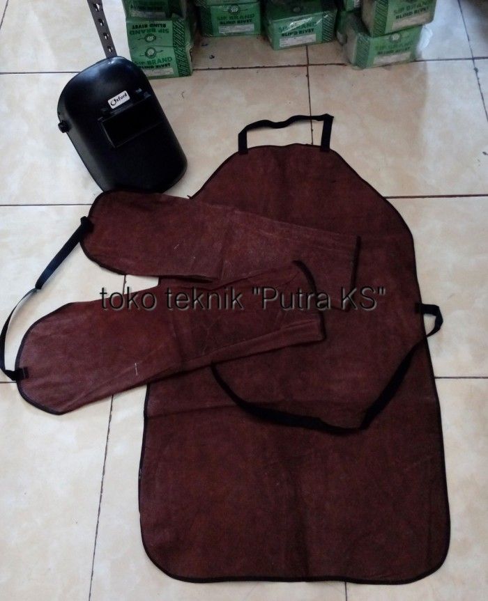 Paket Full Set Safety Las Apron Las Kulit dan Helm Las Setting Putar