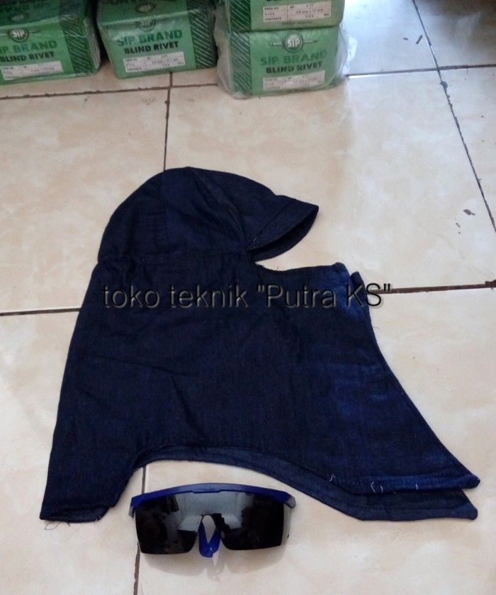 Paket Full Set Topi Welder / Topi Jepang dan Kaca Mata Las Hitam