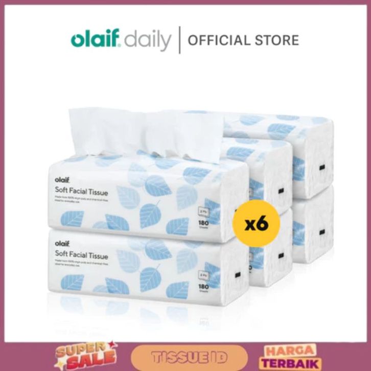 Tisu Murah Tissue Olaif Daily Soft Facial Tissu Wajah 6 Pack 180s