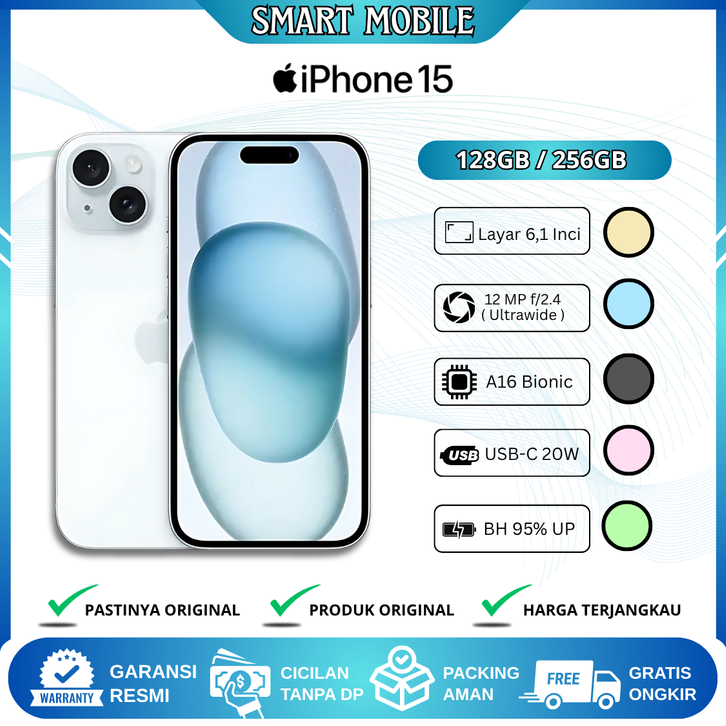 Iphone 15 128 / 256 Gb Second Mulus Like New Hp Apple 15 Garansi Resmi Original Harga Terjangkau
