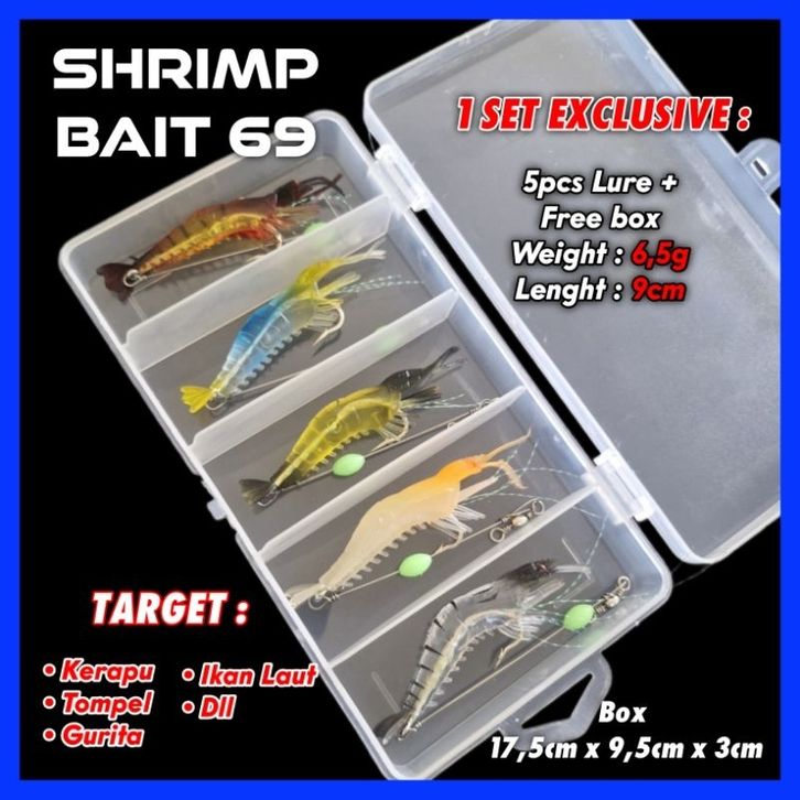Paket Umpan UDANG TIRUAN 1 Box isi 5pcs ukuran 9cm mancing ikan Laut kerapu, kakap, gurita dll RADJA PANCING 69