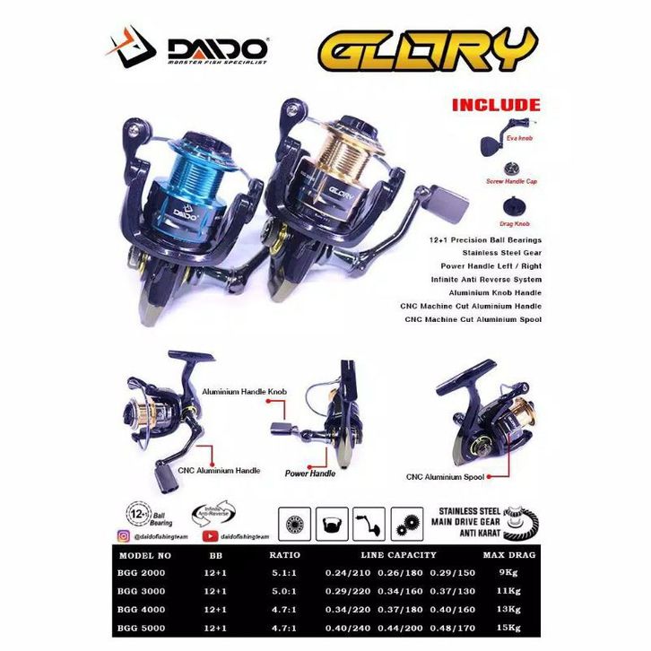 Set Alat Pancing REEL DAIDO GLORY POWER HANDLE + BONUS