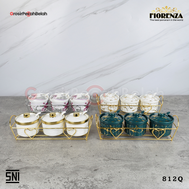 Gratis Ongkir Tempat Bumbu Keramik Rak Set Porselain Motif Marble Fiorenza 812Q Wadah Bumbu Dapur Estetik