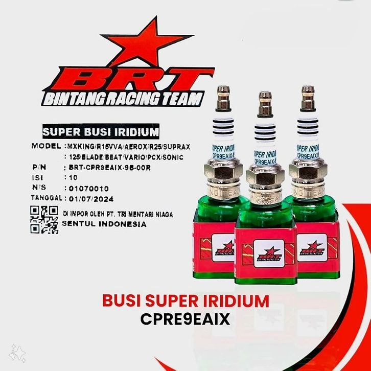BUSI BRT IRIDIUM BEAT SCOOPY VARIO125/150 PCX CBR CRF KHARISMA SUPRA X125 SONIC ADV CB150 KIRANA BLADE110 SPACY BEAT