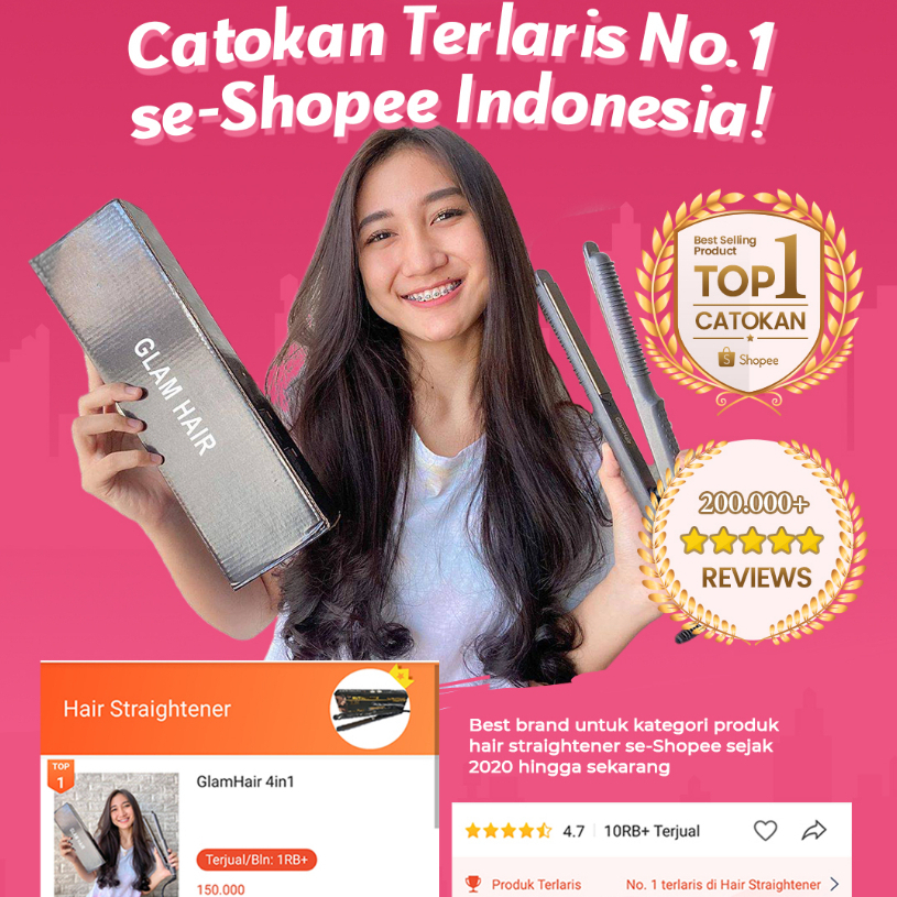 Catokan Rambut Glam Hair 4in1 Bisa Untuk Curly, Volume, Blow dan Meluruskan Rambut