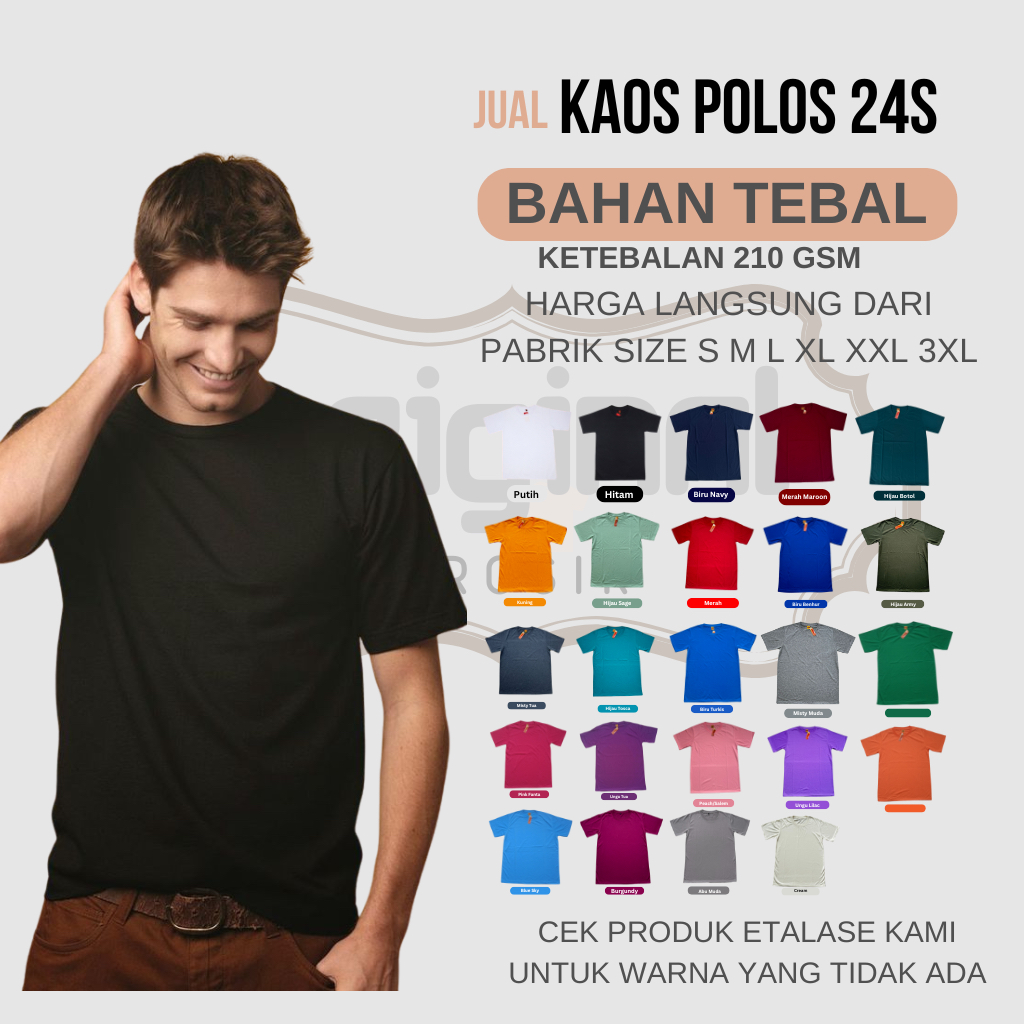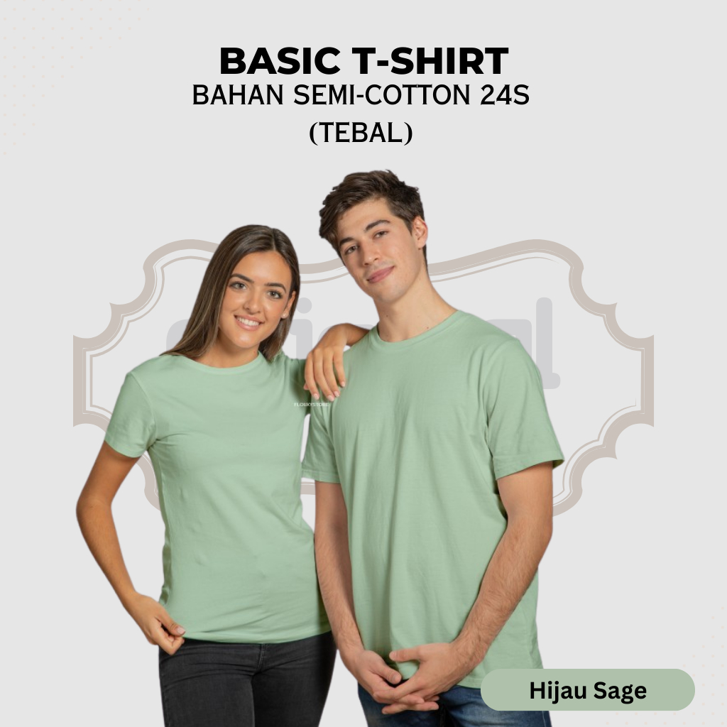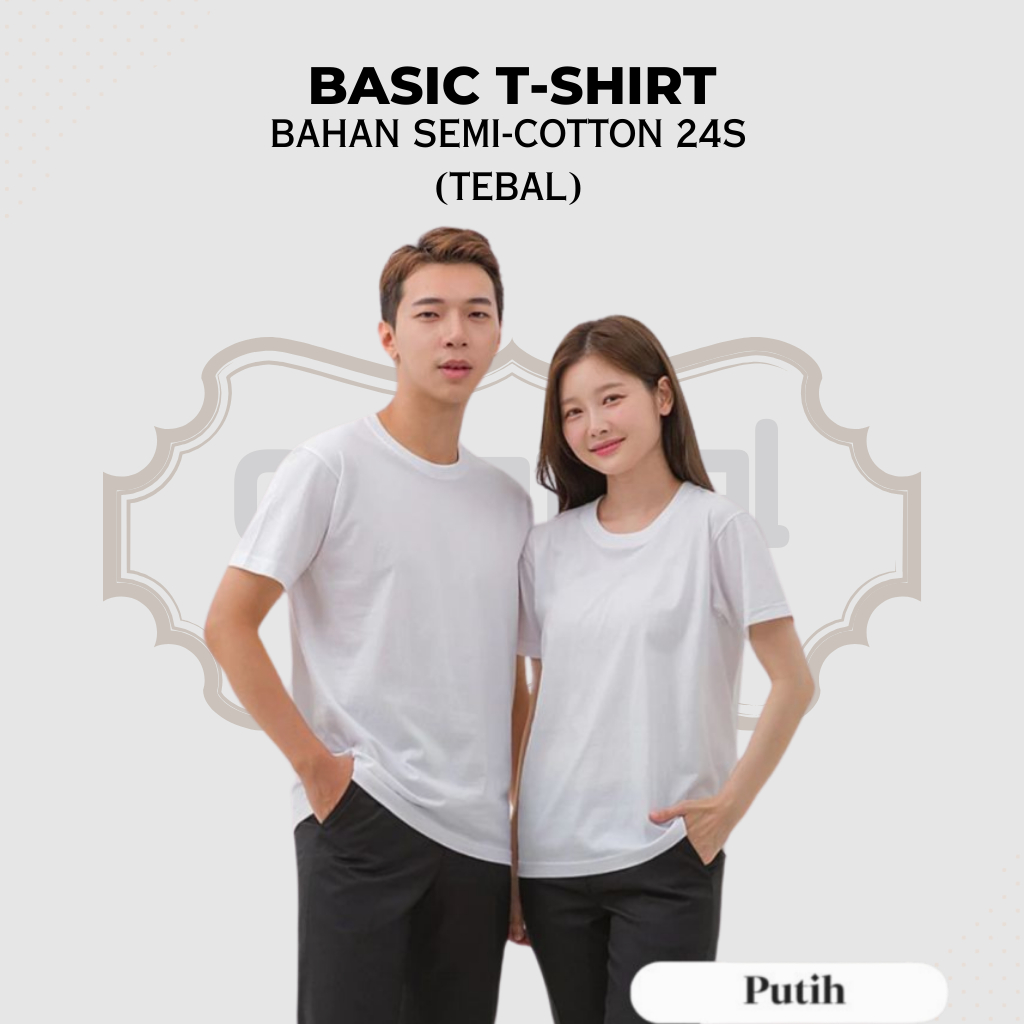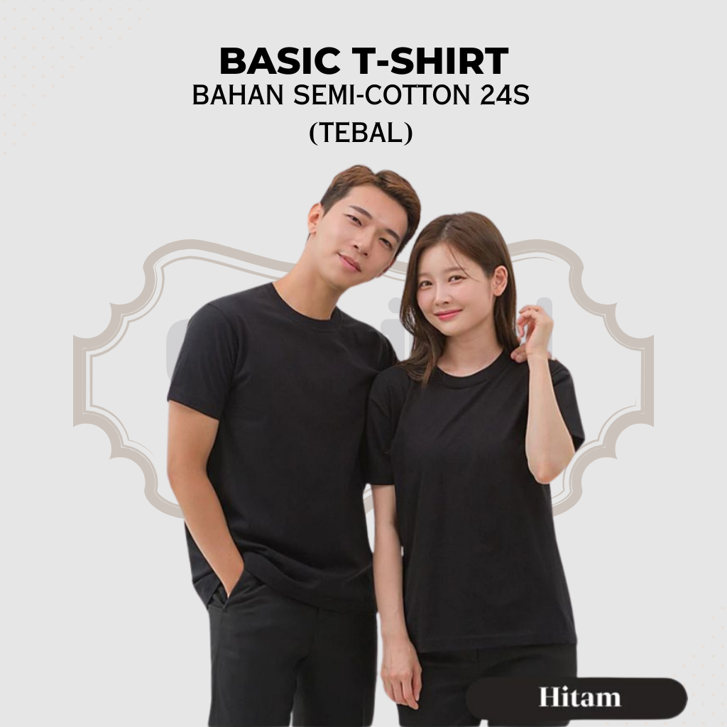 [Tebal] Kaos Polos Pria Wanita Lengan Pendek Semi-Cotton 24s Premium Reguler Fit Dewasa Lembut