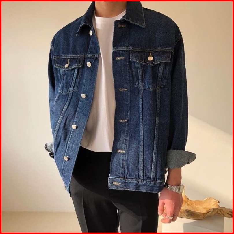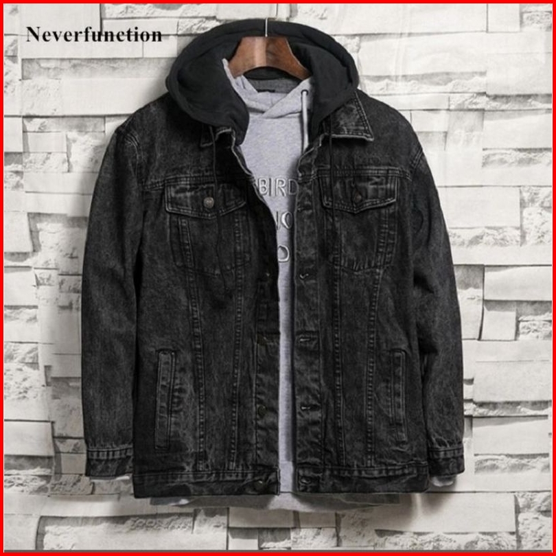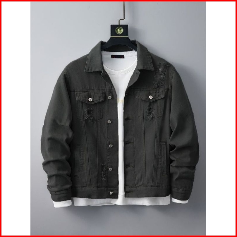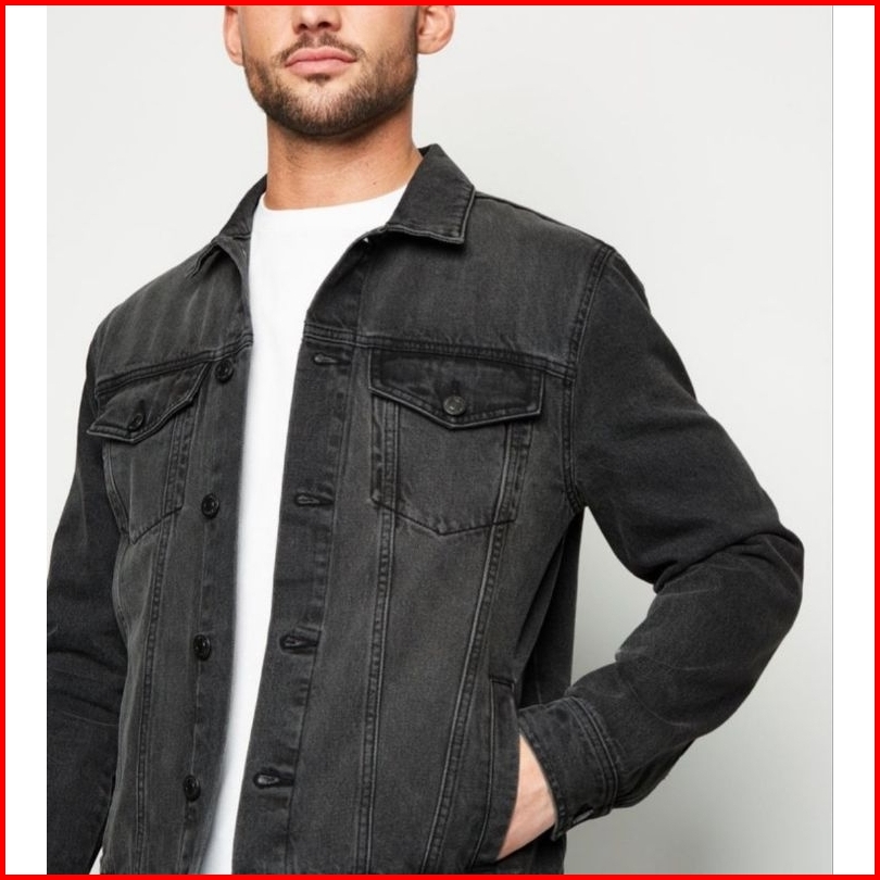 Jaket Jeans Denim Pria Abu Wash Bikers Tebal