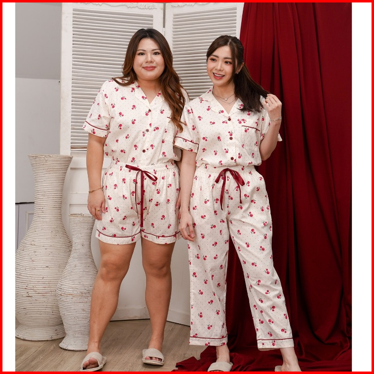Felfe - Cherry Pajamas Piyama Katun Jepang Wanita Set Piyama Wanita