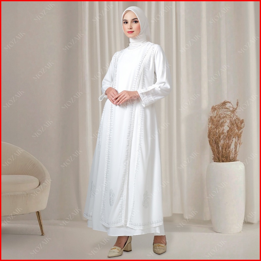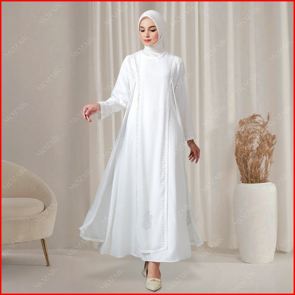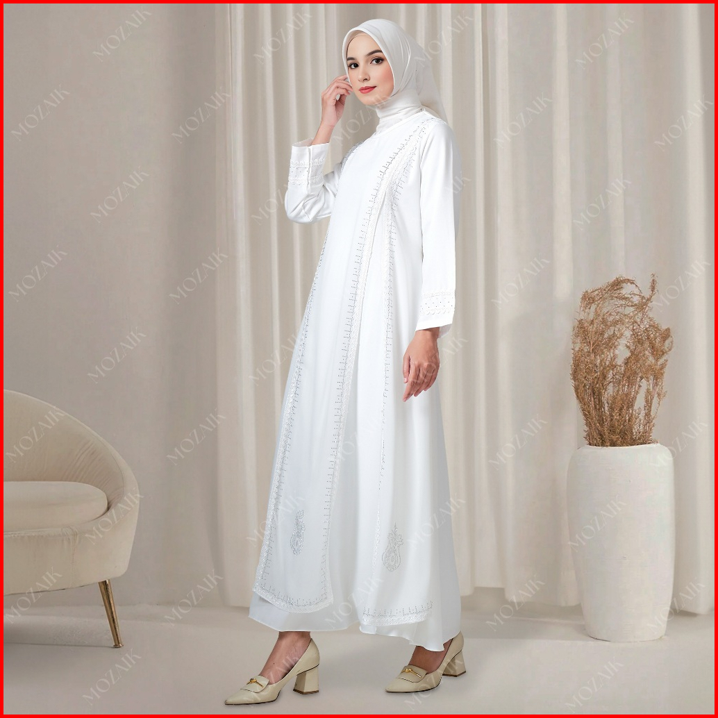 Mozaik Dress Best Seller Fashion Muslim Gamis Putih Wanita Muslim Kekinian Terbaru Abaya Warna Putih Dan Hitam Turkey Tu