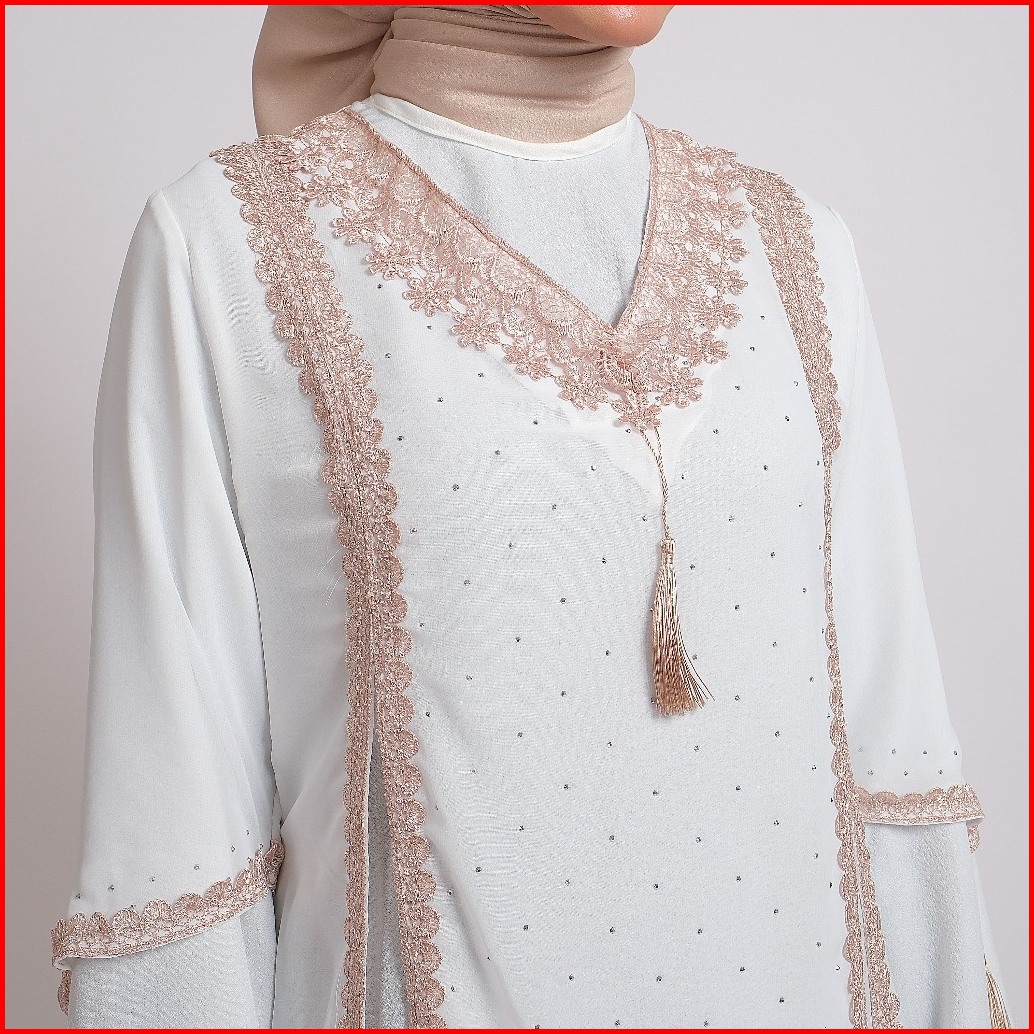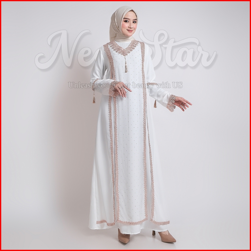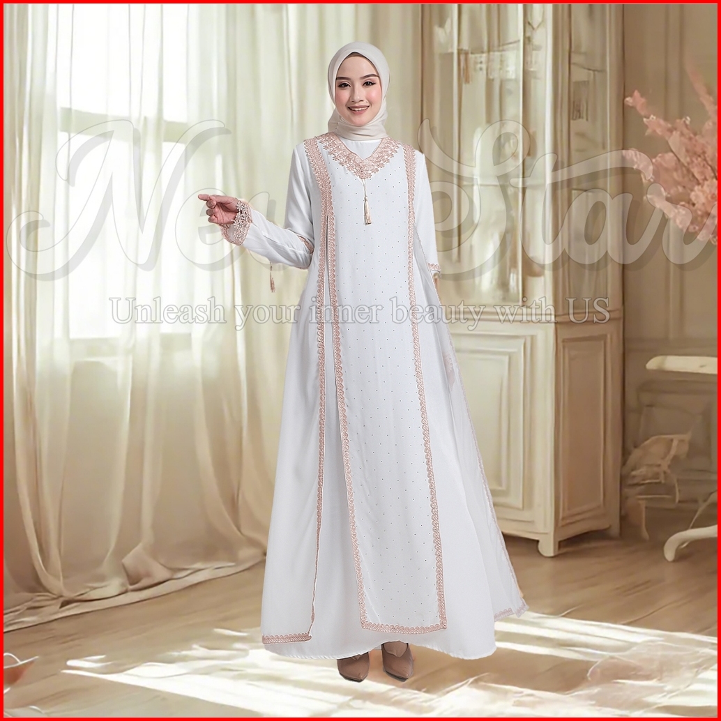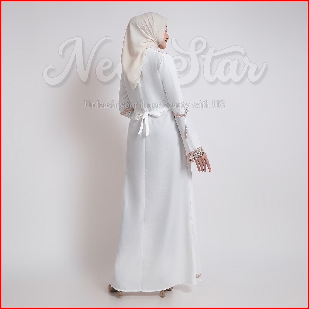 Newstar - Gamis Putih Baju Muslim Wanita Terbaru Dress Madinah Mewah Simple Elegan Abaya Turki Lebaran Haji Umroh G01