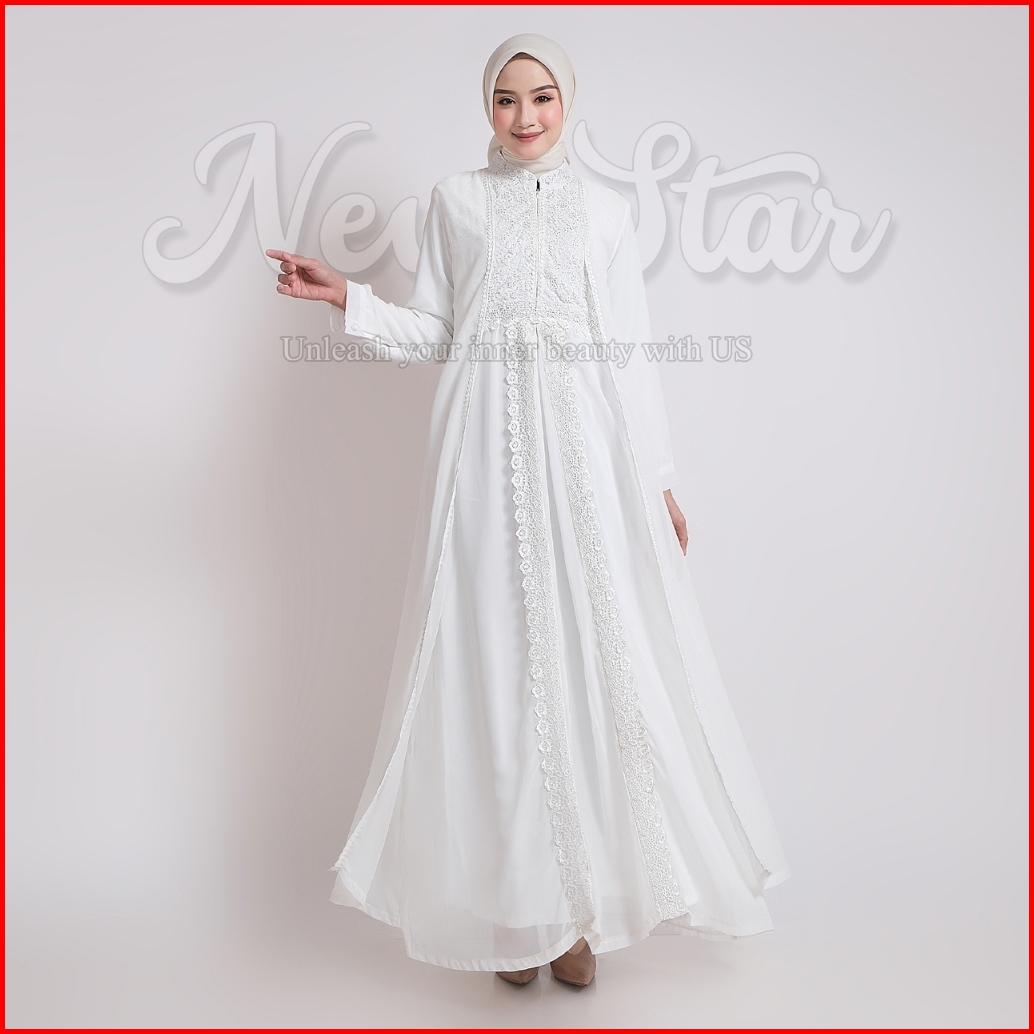 Newstar - Gamis Lebaran 2025 Terbaru Gamis Putih Lebaran 2025 Baju Lebaran 2025 Abaya Turkey Abaya Putih Brokat Lebaran