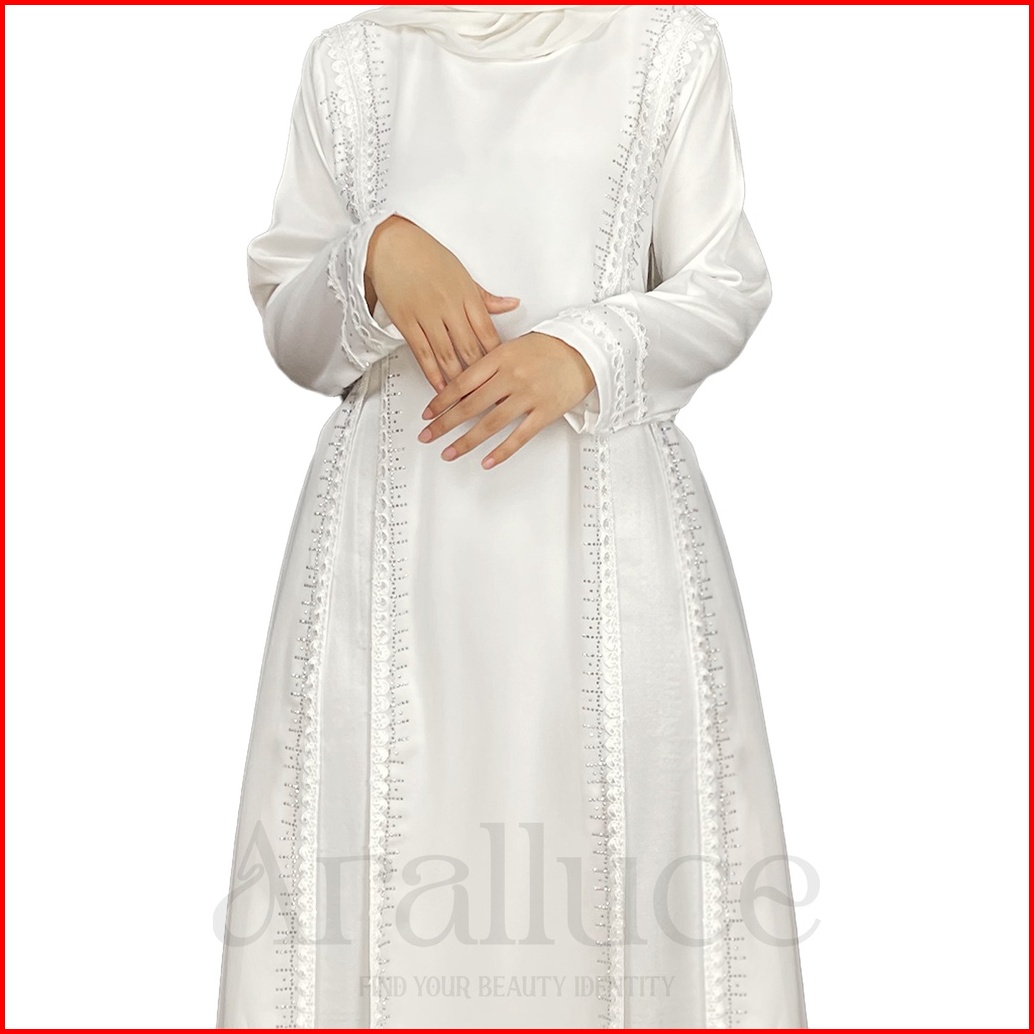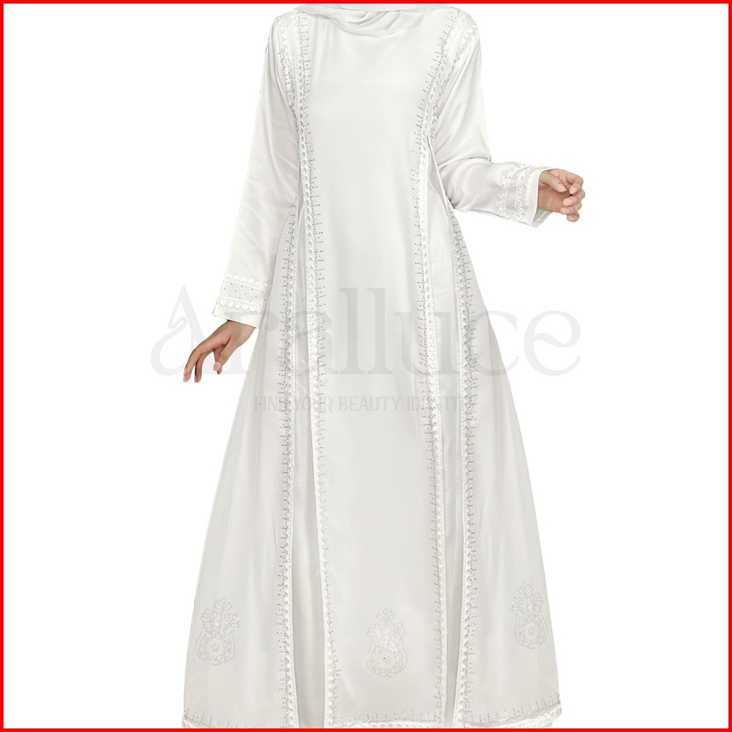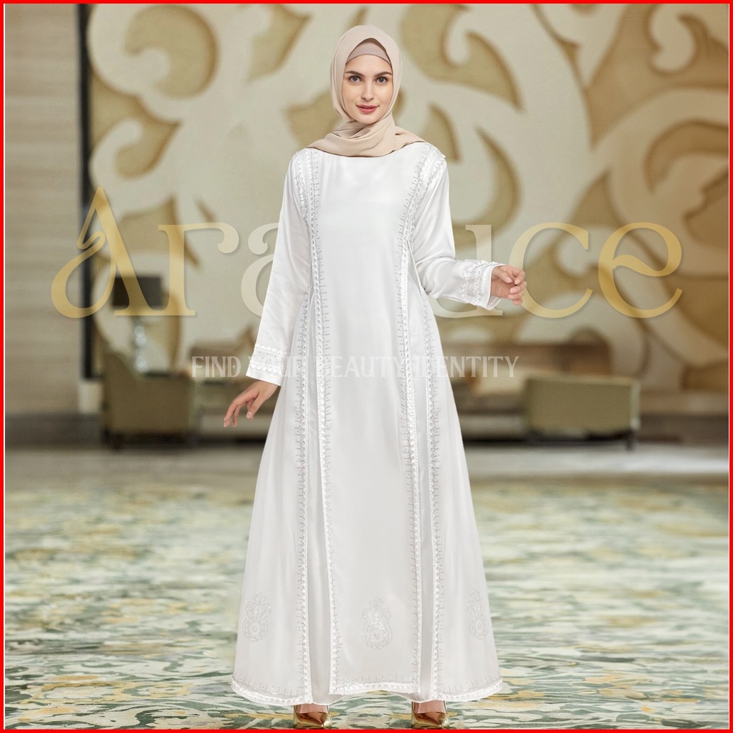 Aralluce Baju Gamis Putih Wanita Kekinian Terbaru Arl 044- Dress Abaya Putih Turkey Mewah Dan Elegan