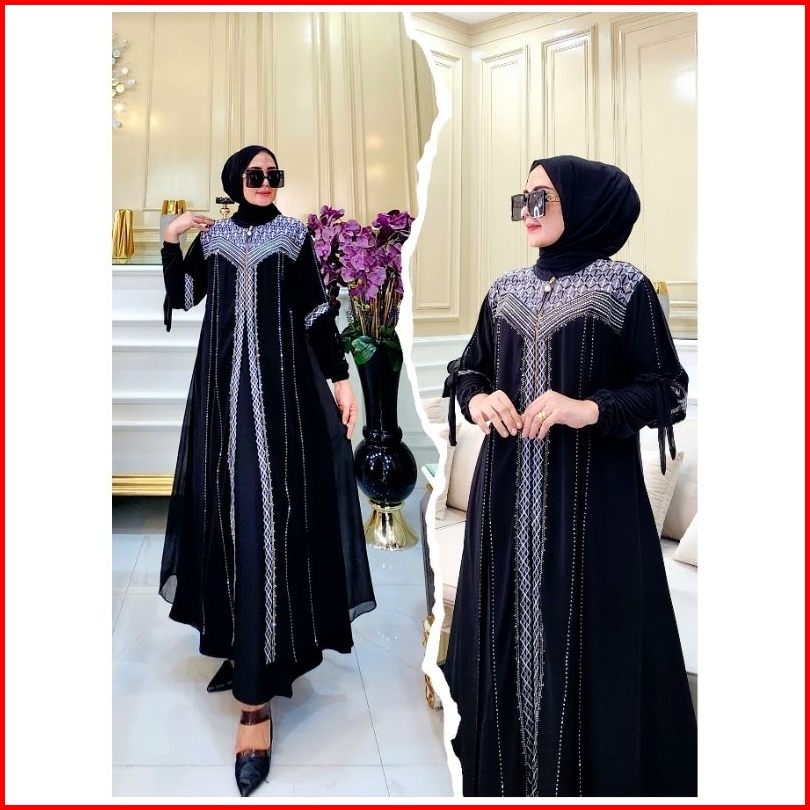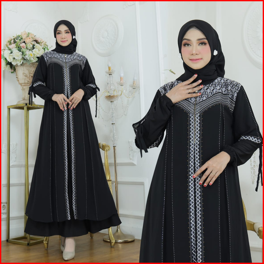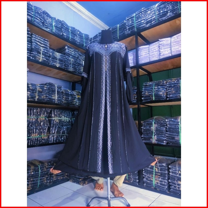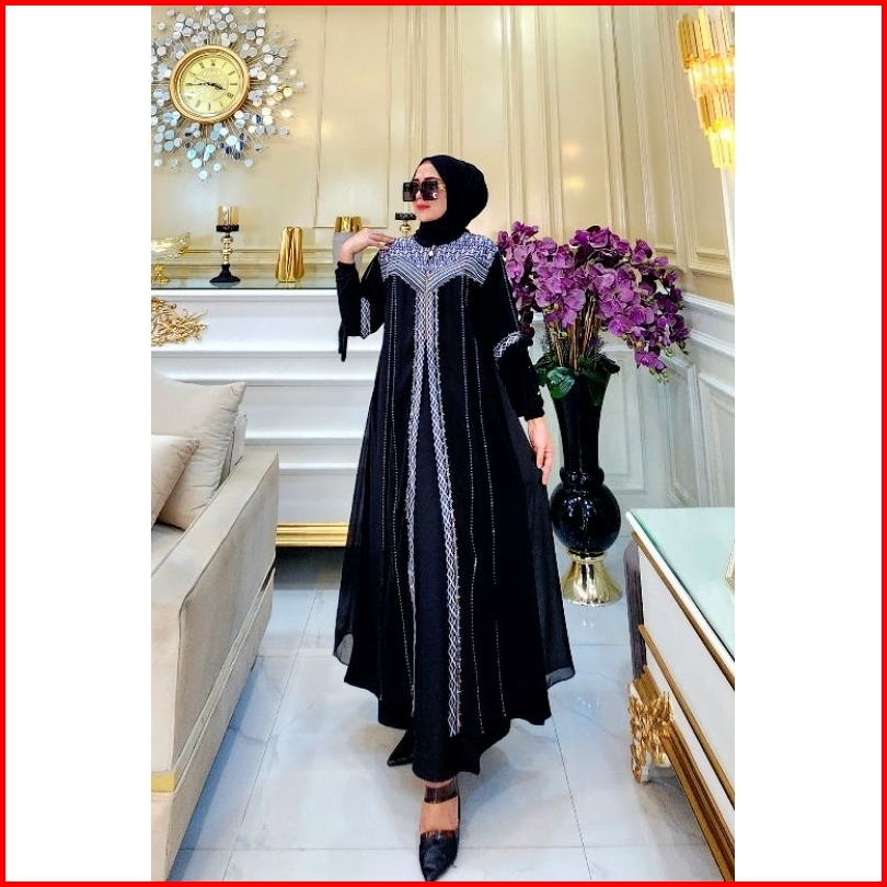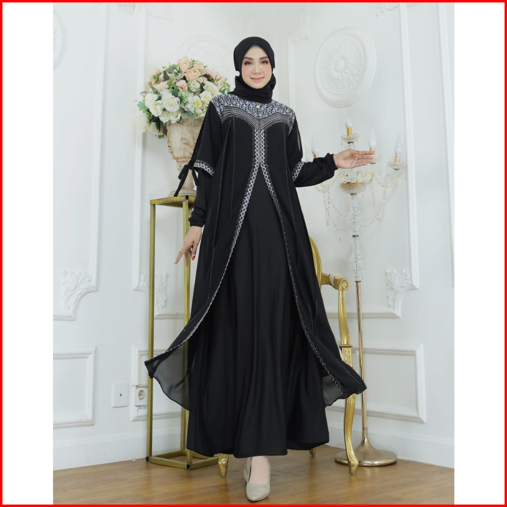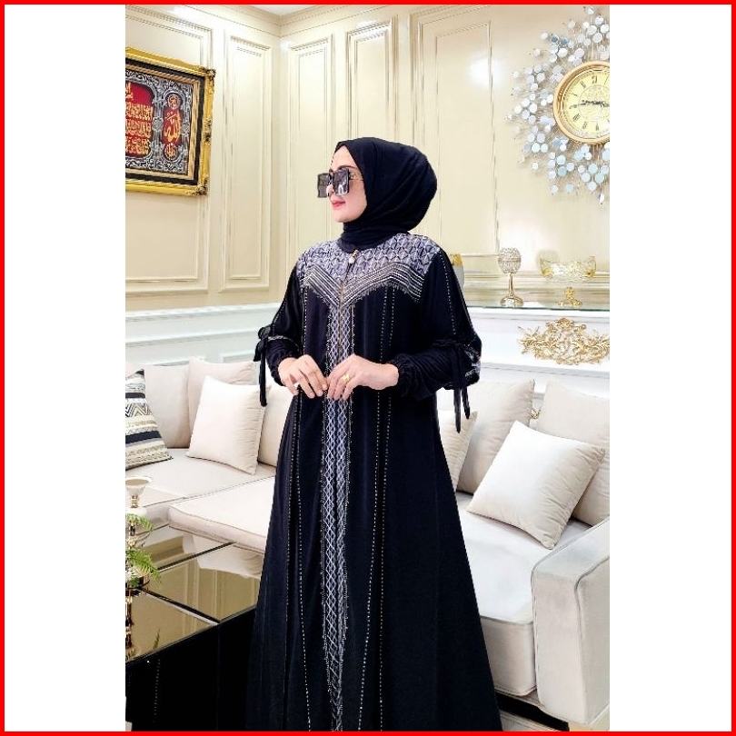 Gamis Abaya Hitam Turkey Bahan Jersey Mix Ceruty Bordir Baju Busana Maxi Dress Muslim Wanita - Ayuni