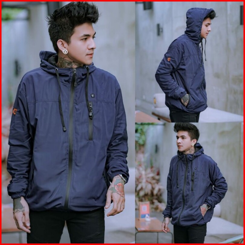 Jaket Cowok Parasut Pria Waterproof Hoodie Anti Air Outdoor Wp Parasit Distro Keren Murah Terbaru
