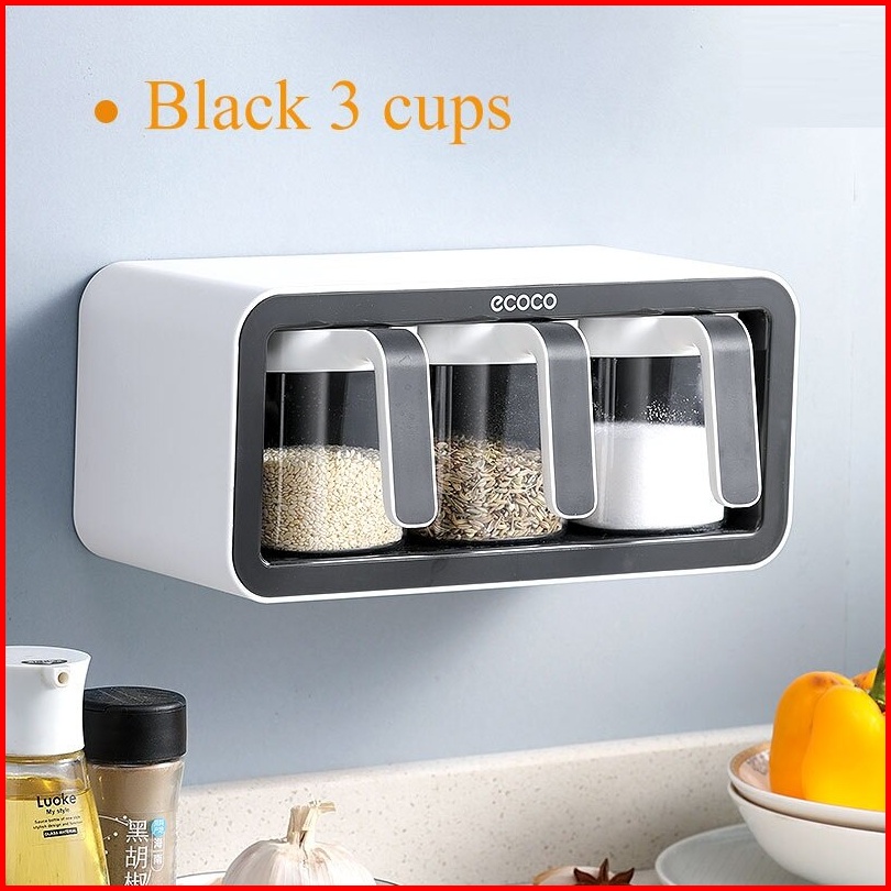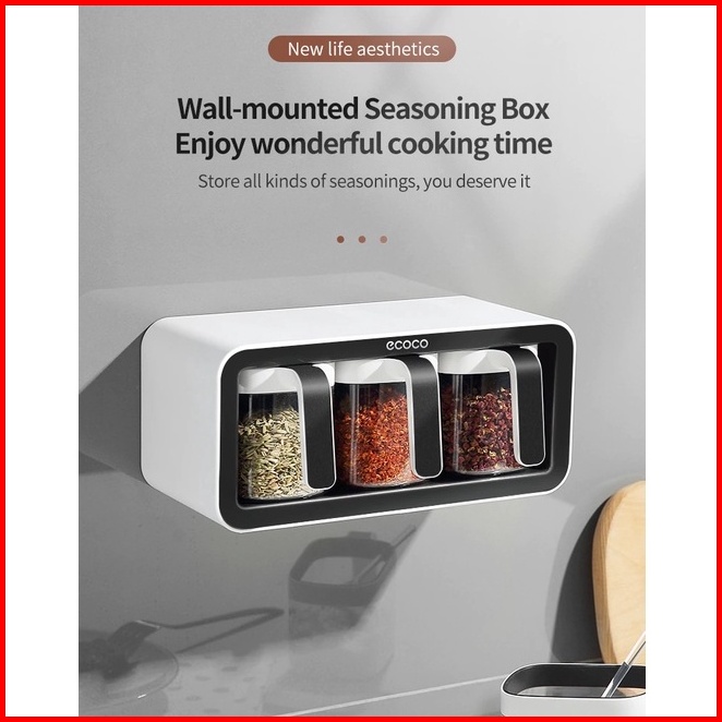 Papabear Ecoco Wall Mounted Seasoning Box Three Cups - Tempat Wadah Bumbu Dapur Voova Angola Calista Tataruma Cooger Alo
