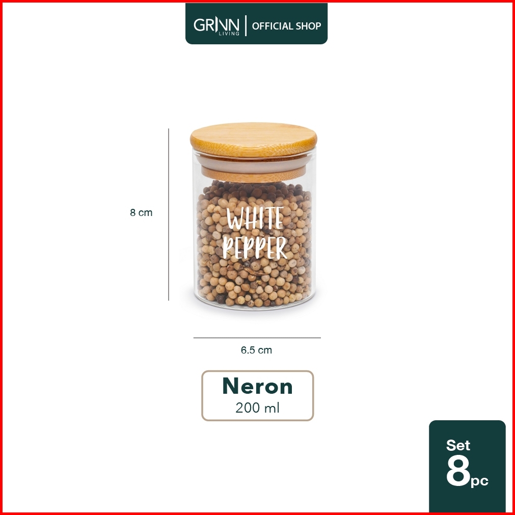 Grinn Living Set Paket Neron Jar 200 Ml Toples Kaca Tutup Kayu Tempat Penyimpanan Bumbu Dapur