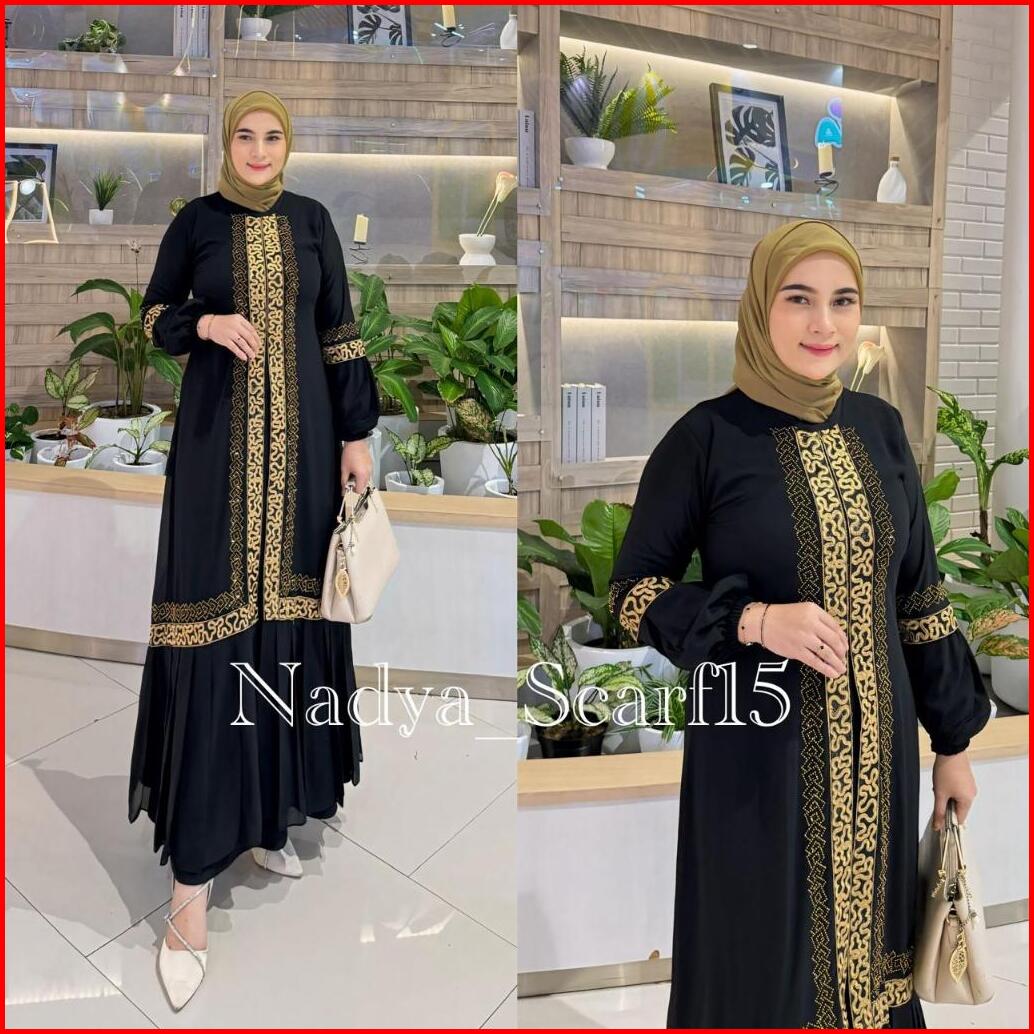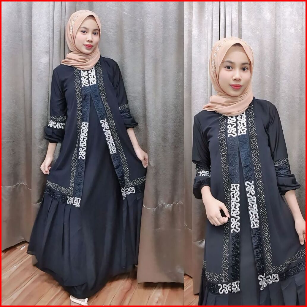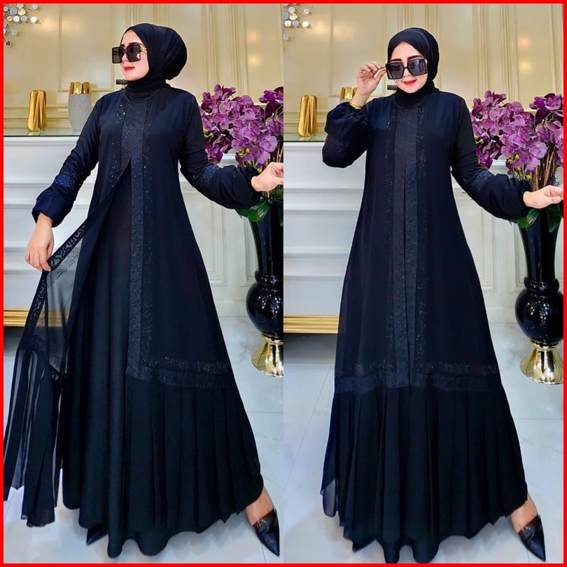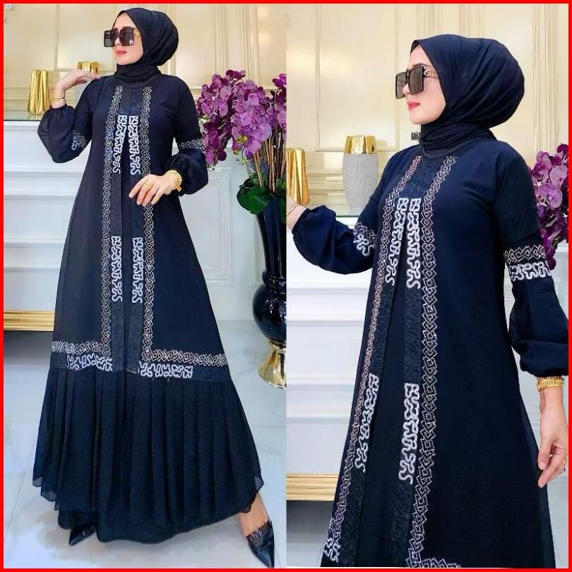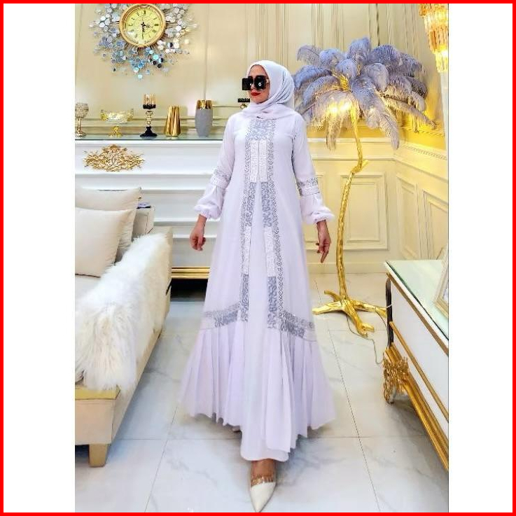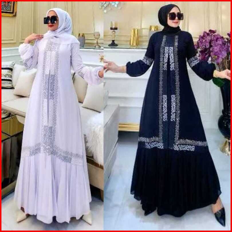 New Abaya Arab Mewah Hitam Putih Mayung Turkey Jersey Bordir Mote Swarosky Anuskha