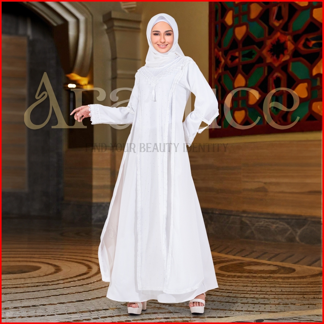 Aralluce Baju Gamis Putih Wanita Dewasa Kekinian Arl 019 Abaya Putih Turkey Premium Gamis Dress Arab Mewah Dan Elegan Fa