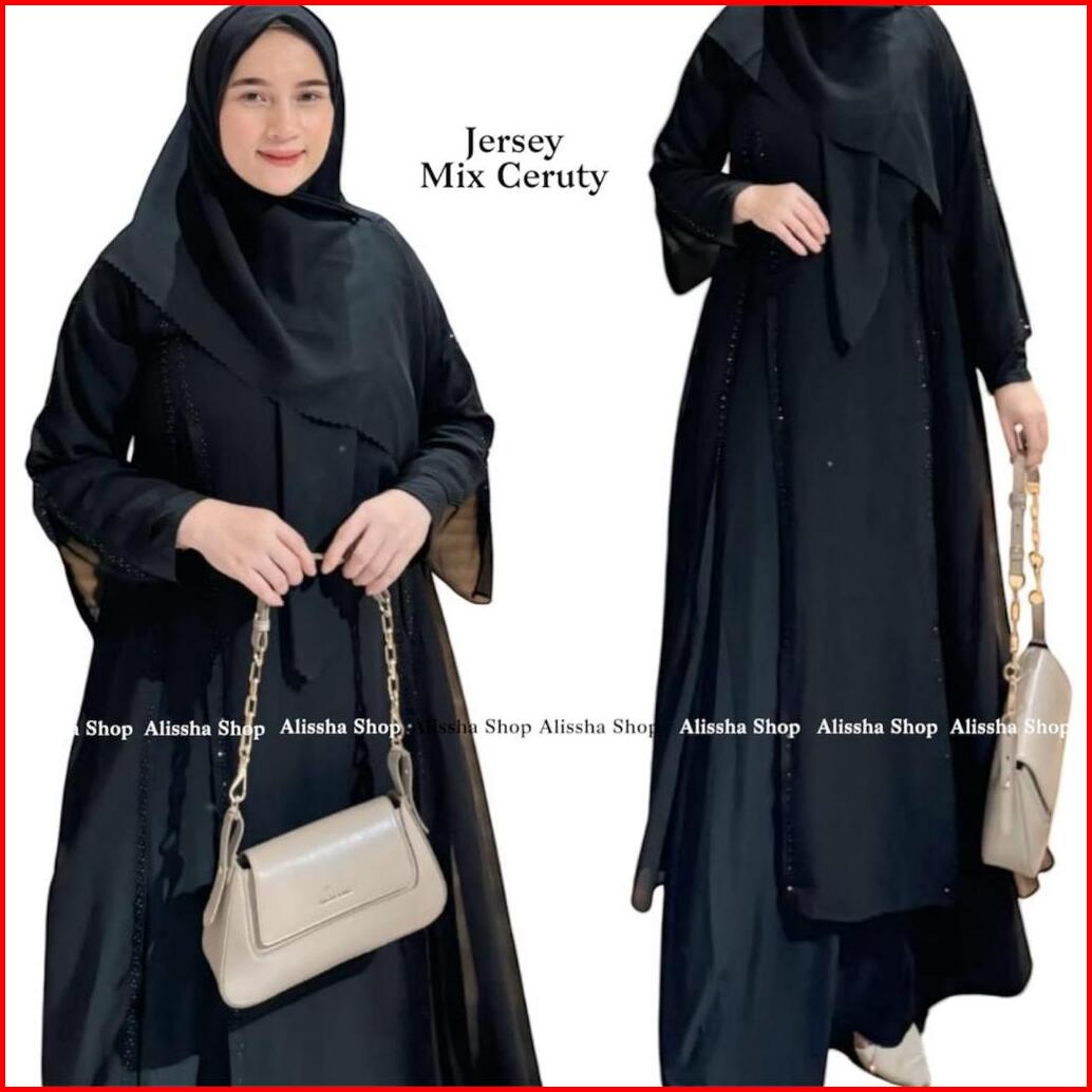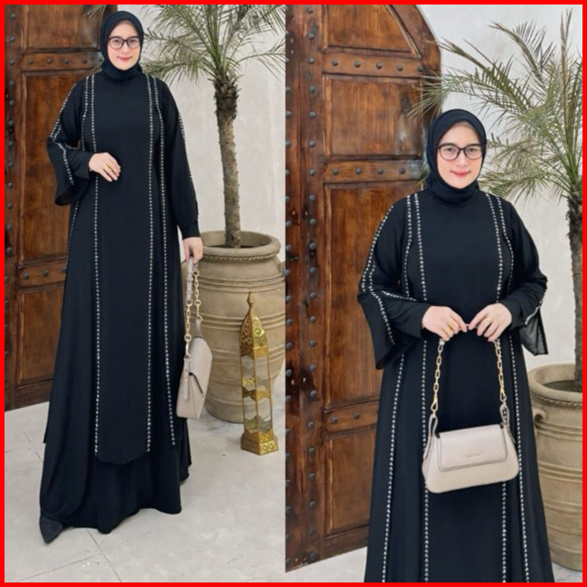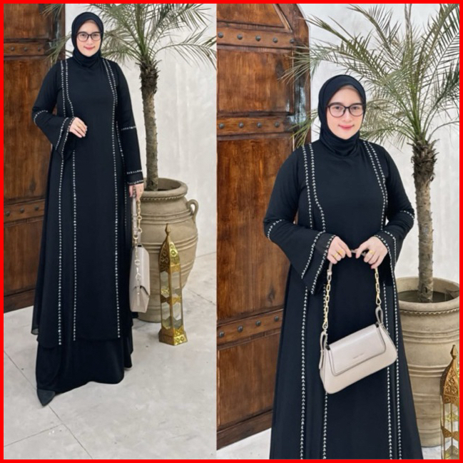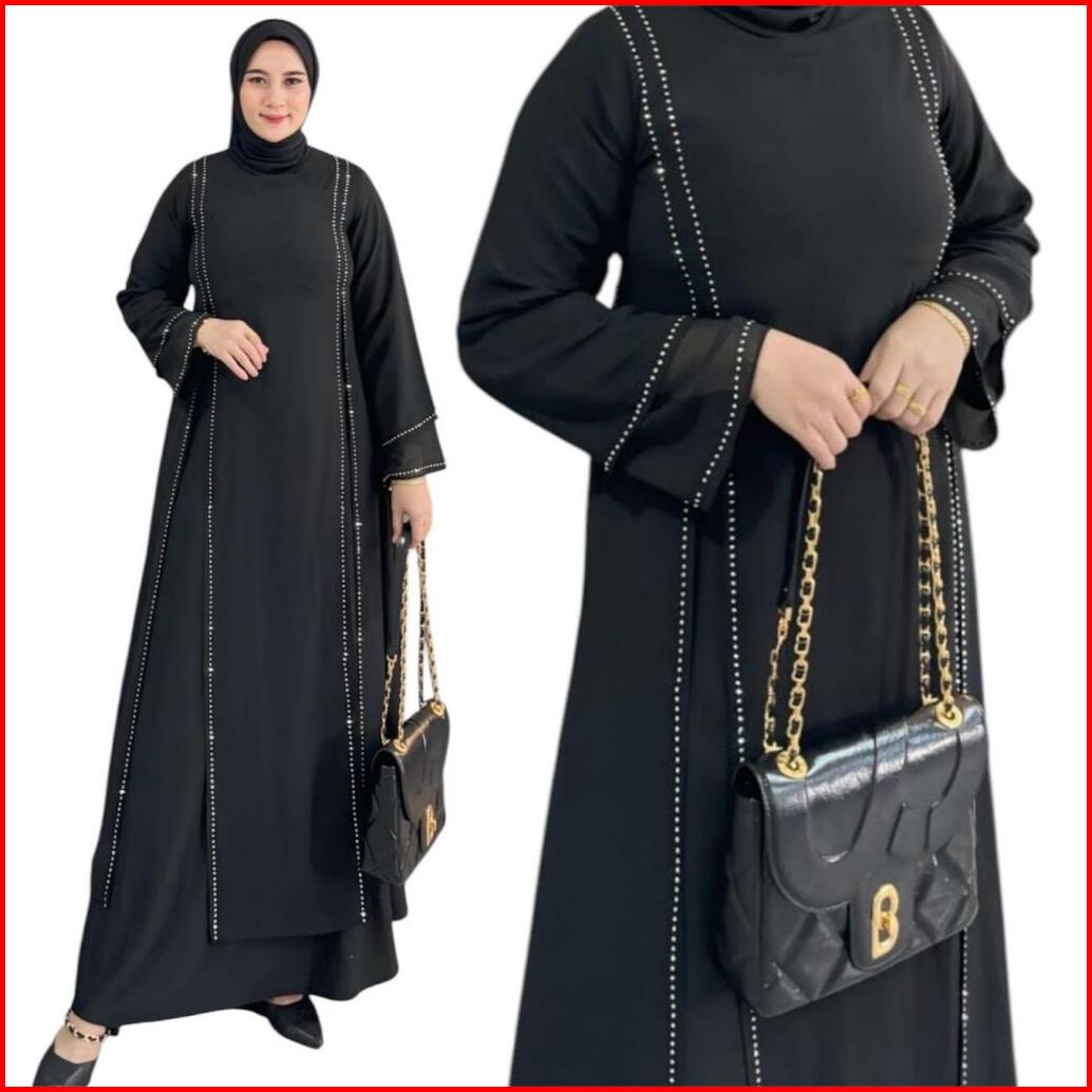 Gamis Abaya Turkey Payet Dan Silver Lengan Terompet Helena