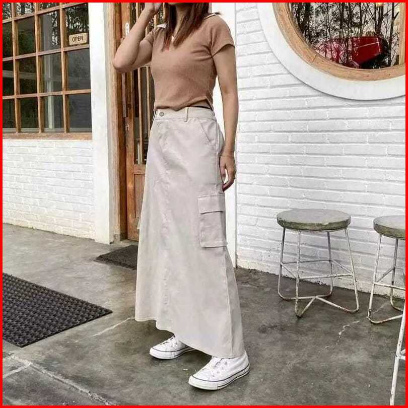 Rok Cargo Wanita Panjang Terbaru Rok Korean Style Kekinian Rok Cargo Wanita Jumbo